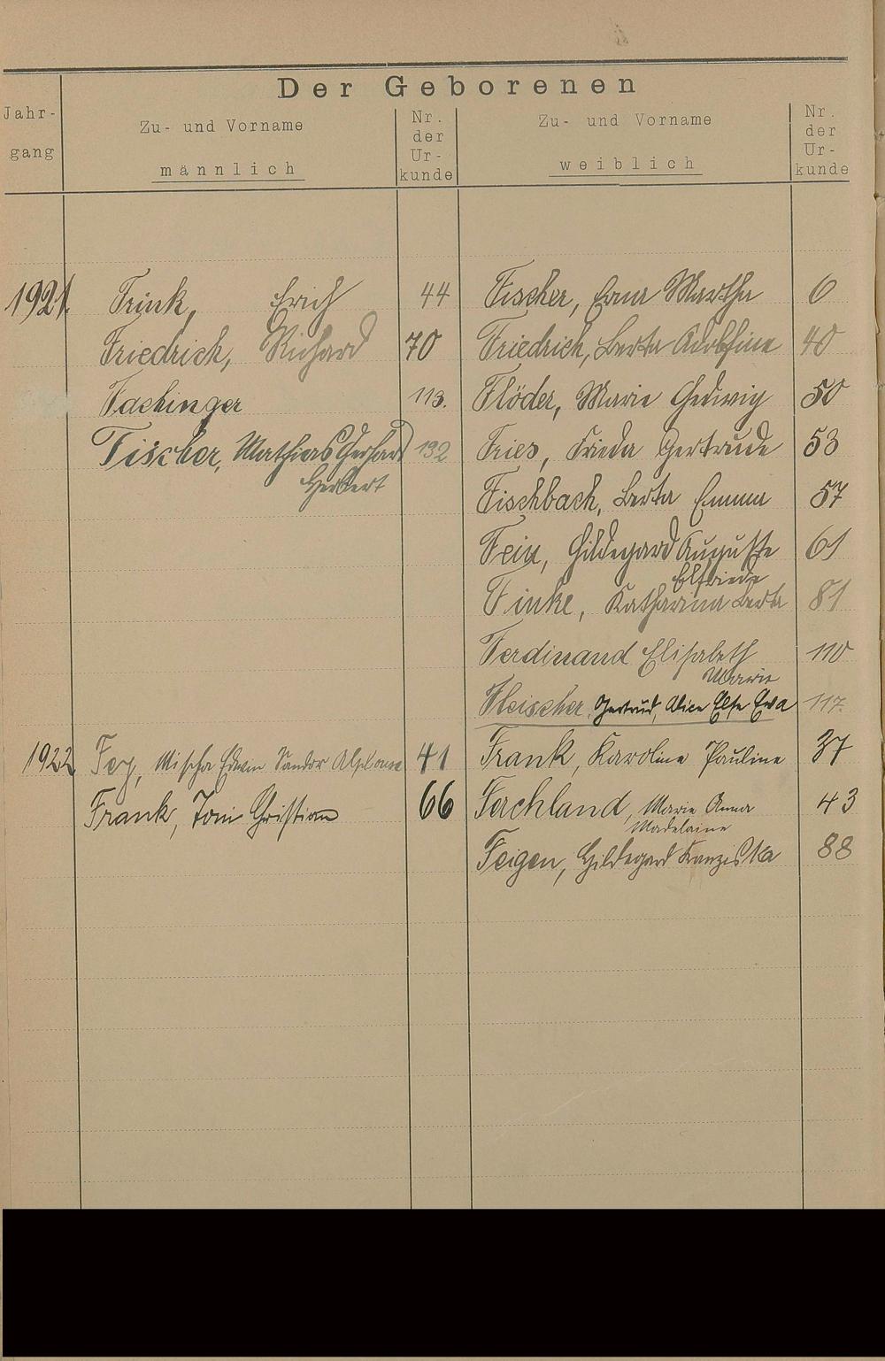 1555: Register A - Z zum Geburtsregister 1901-1930