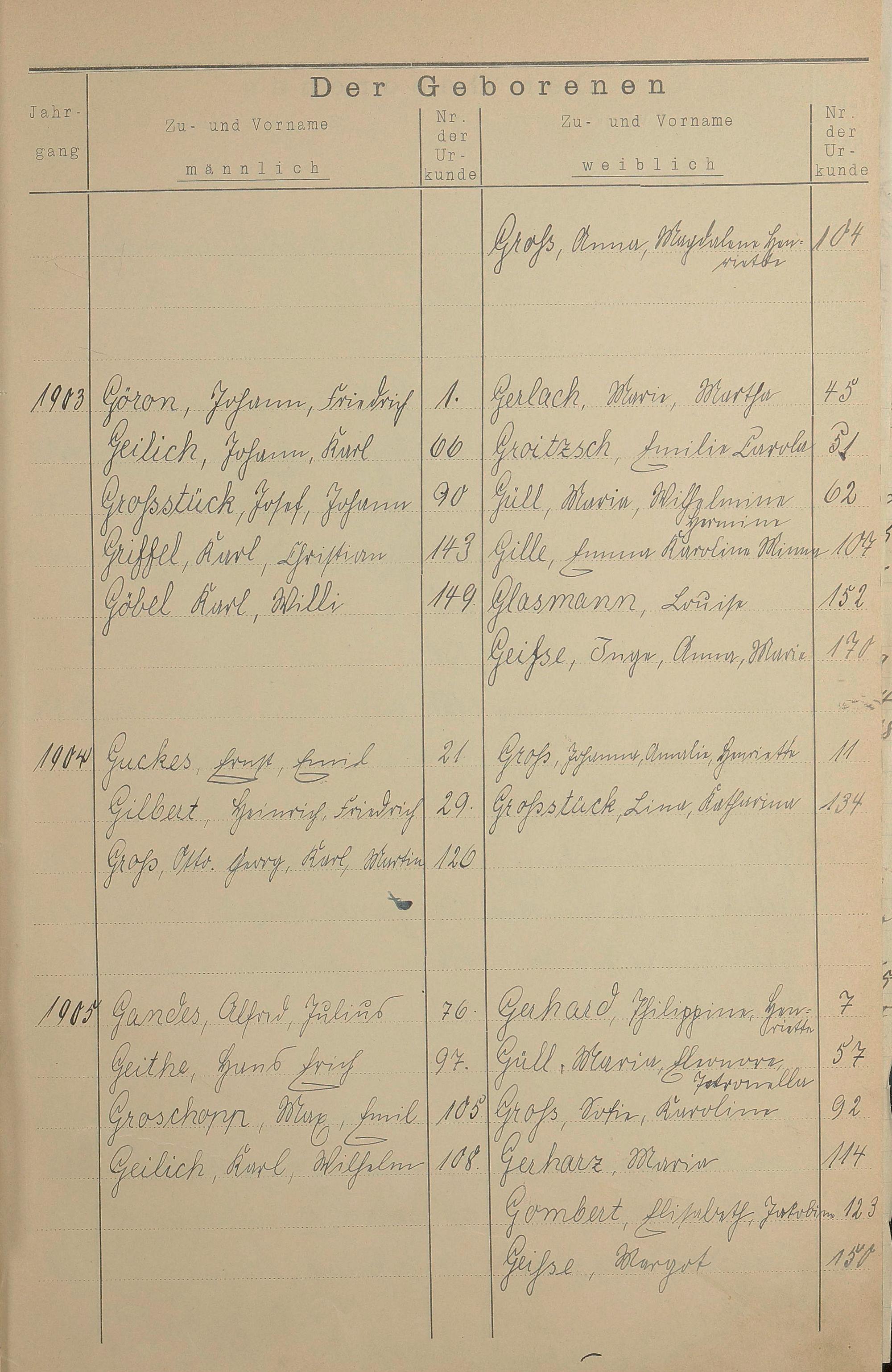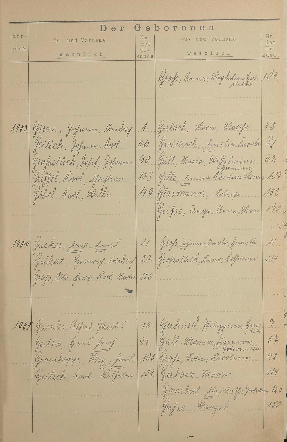Register A - Z zum Geburtsregister 1901-1930
