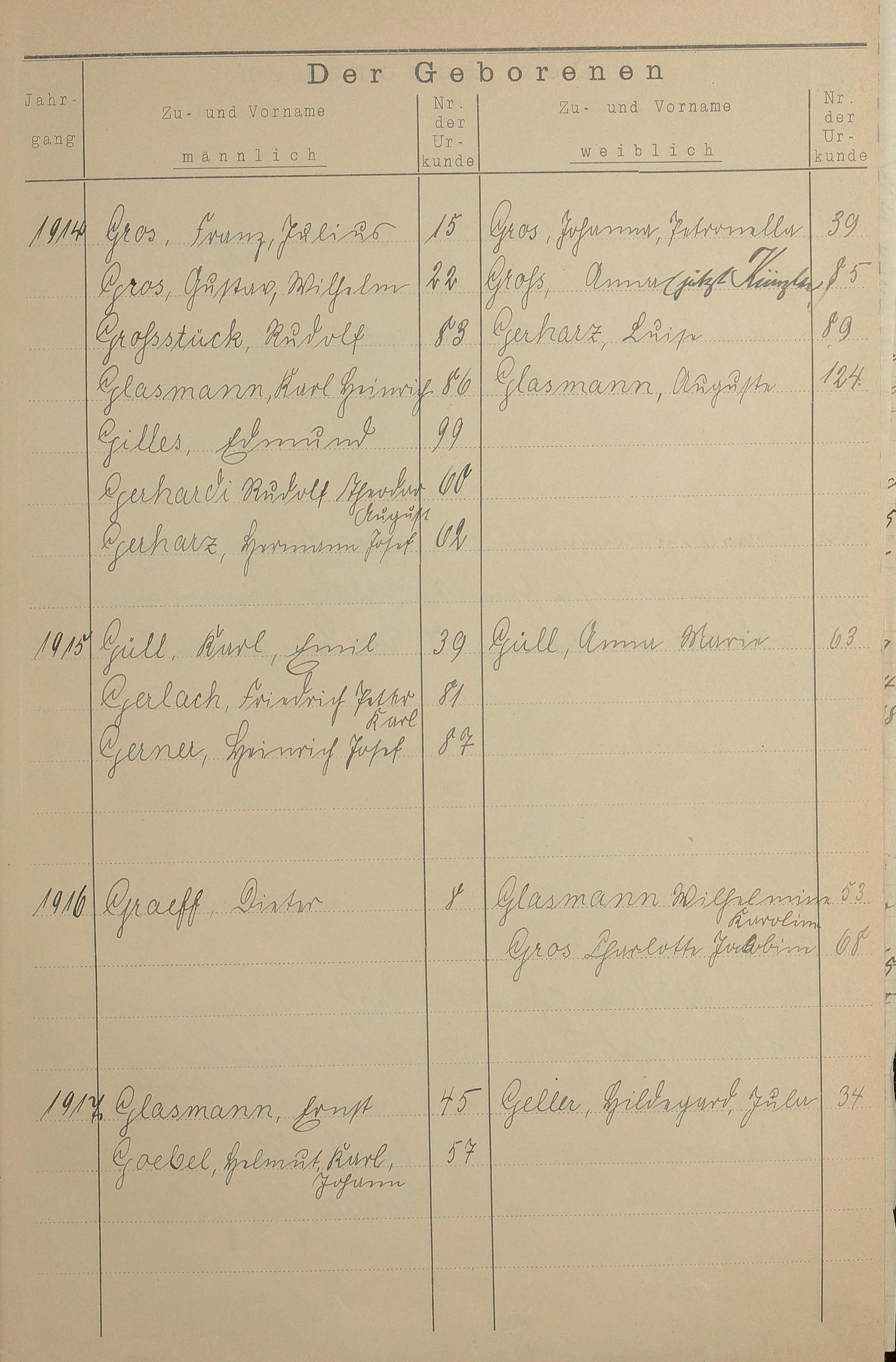 1555: Register A - Z zum Geburtsregister 1901-1930
