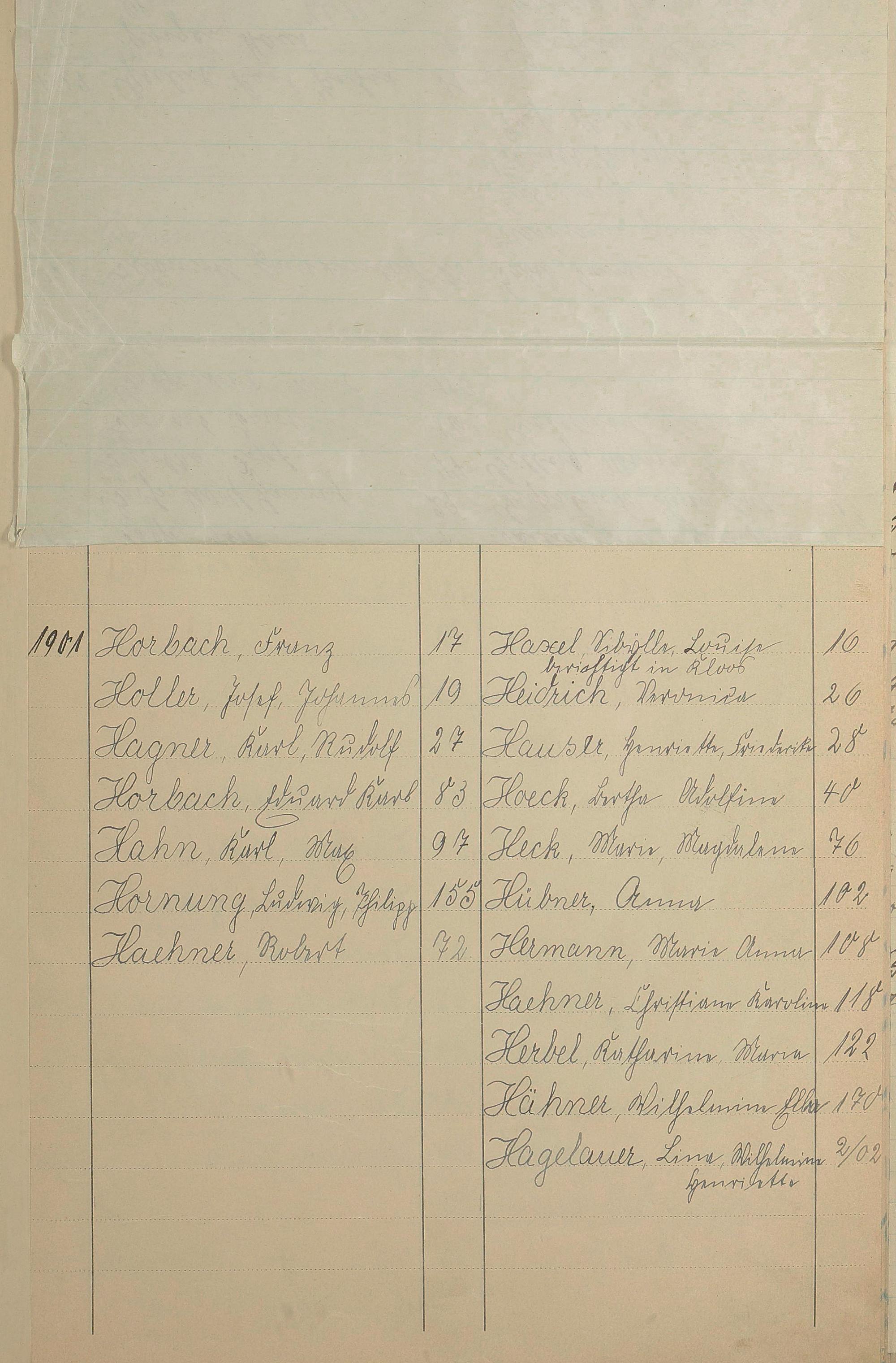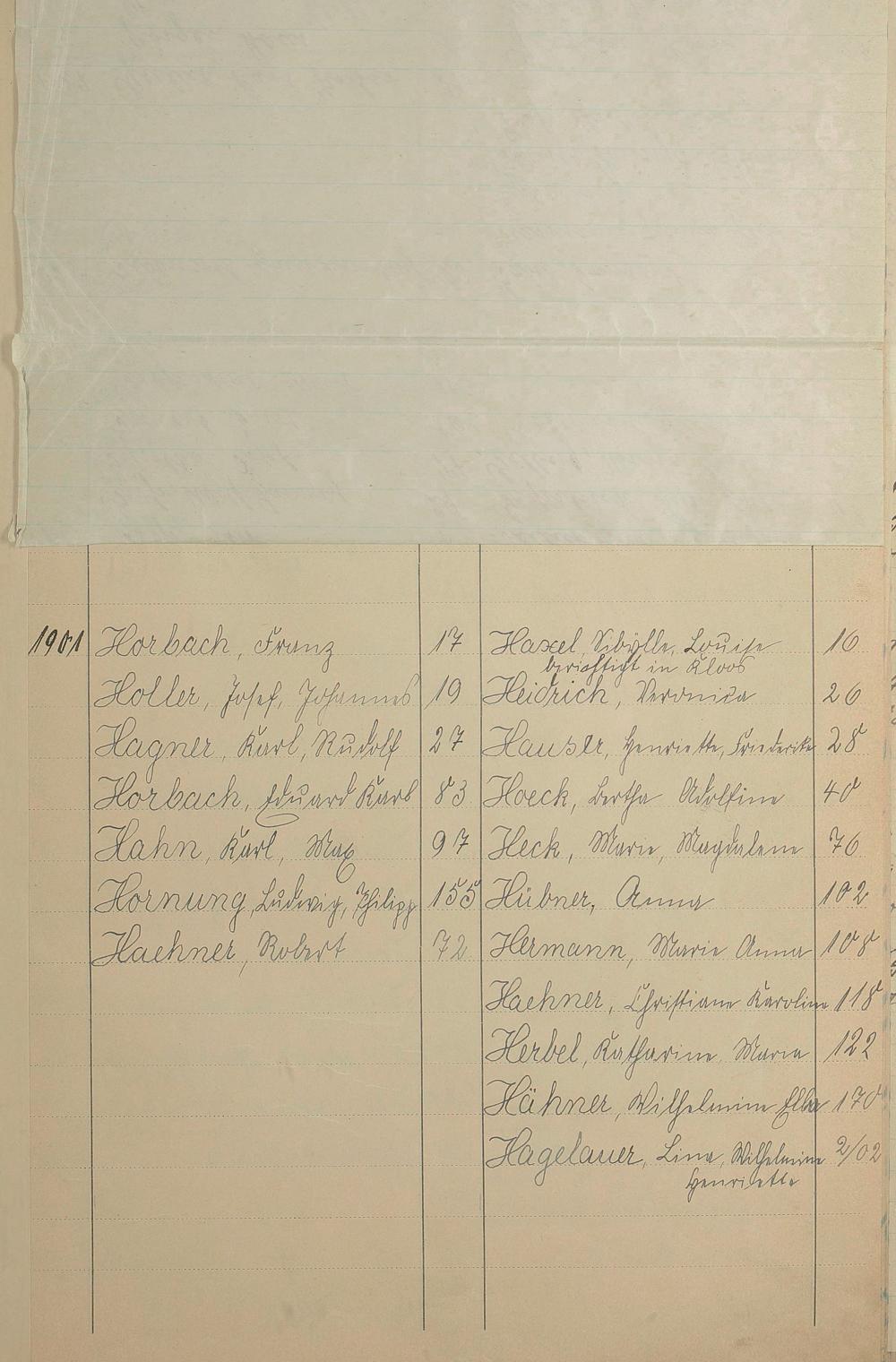 Register A - Z zum Geburtsregister 1901-1930