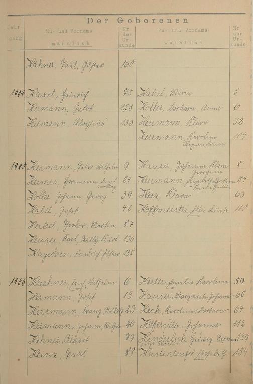 1555: Register A - Z zum Geburtsregister 1901-1930