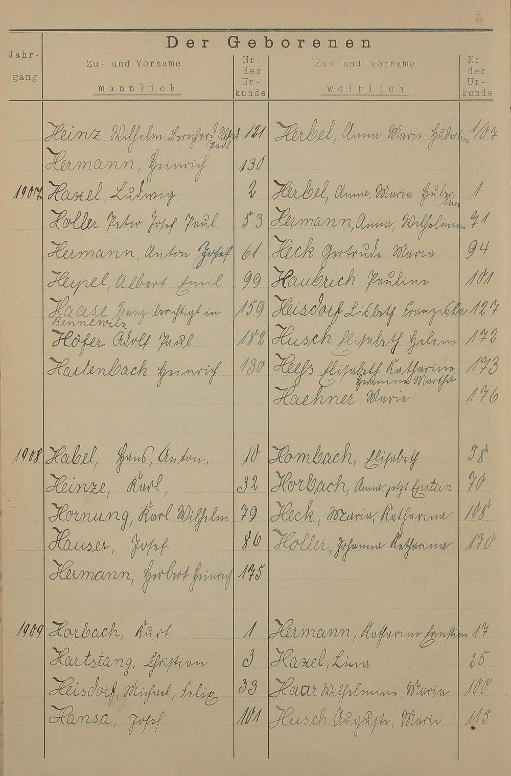 Register A - Z zum Geburtsregister 1901-1930
