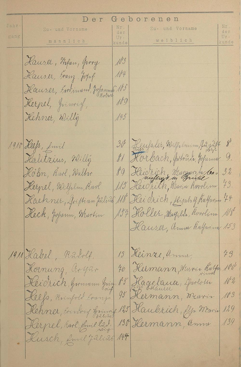 1555: Register A - Z zum Geburtsregister 1901-1930