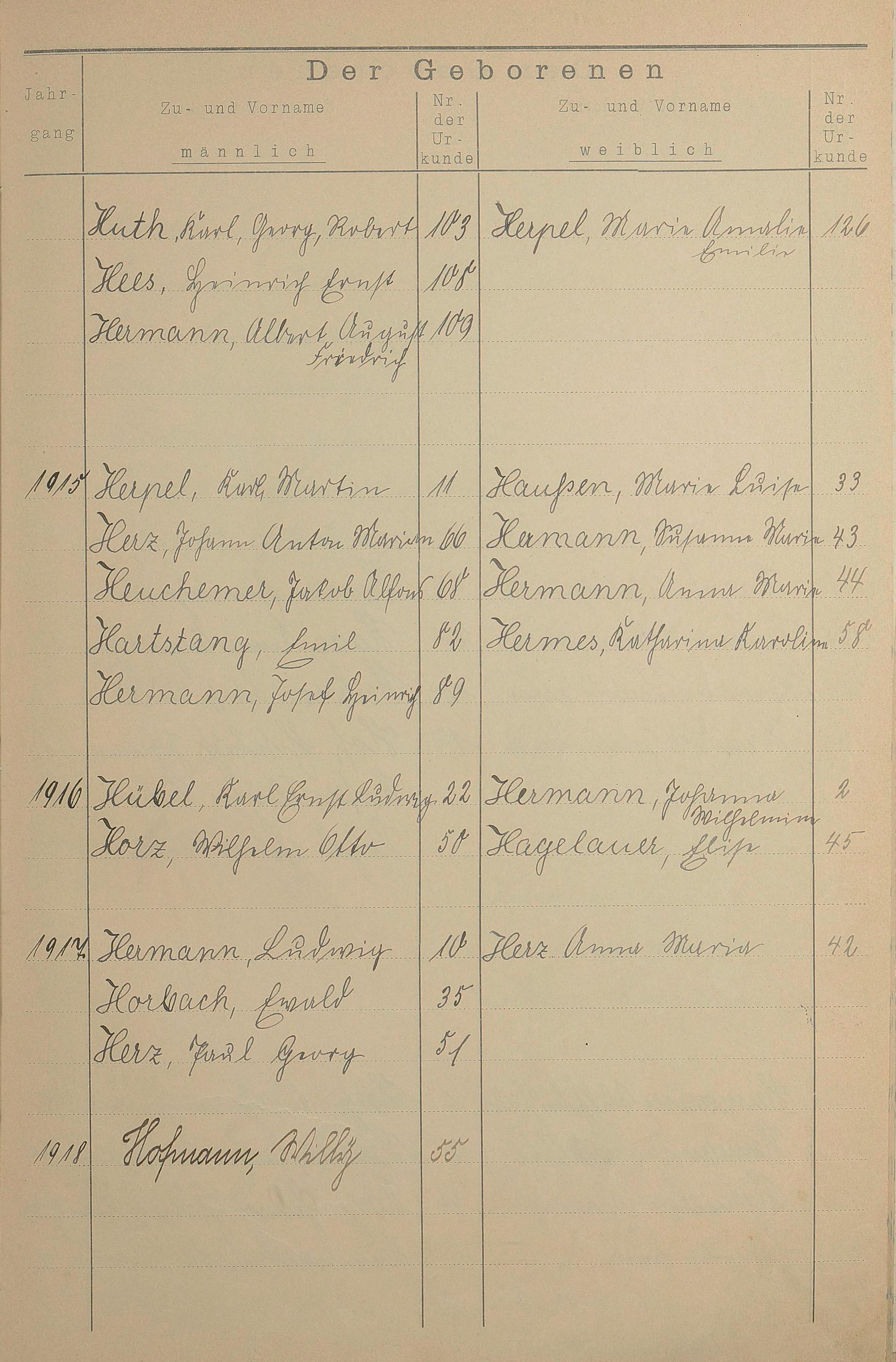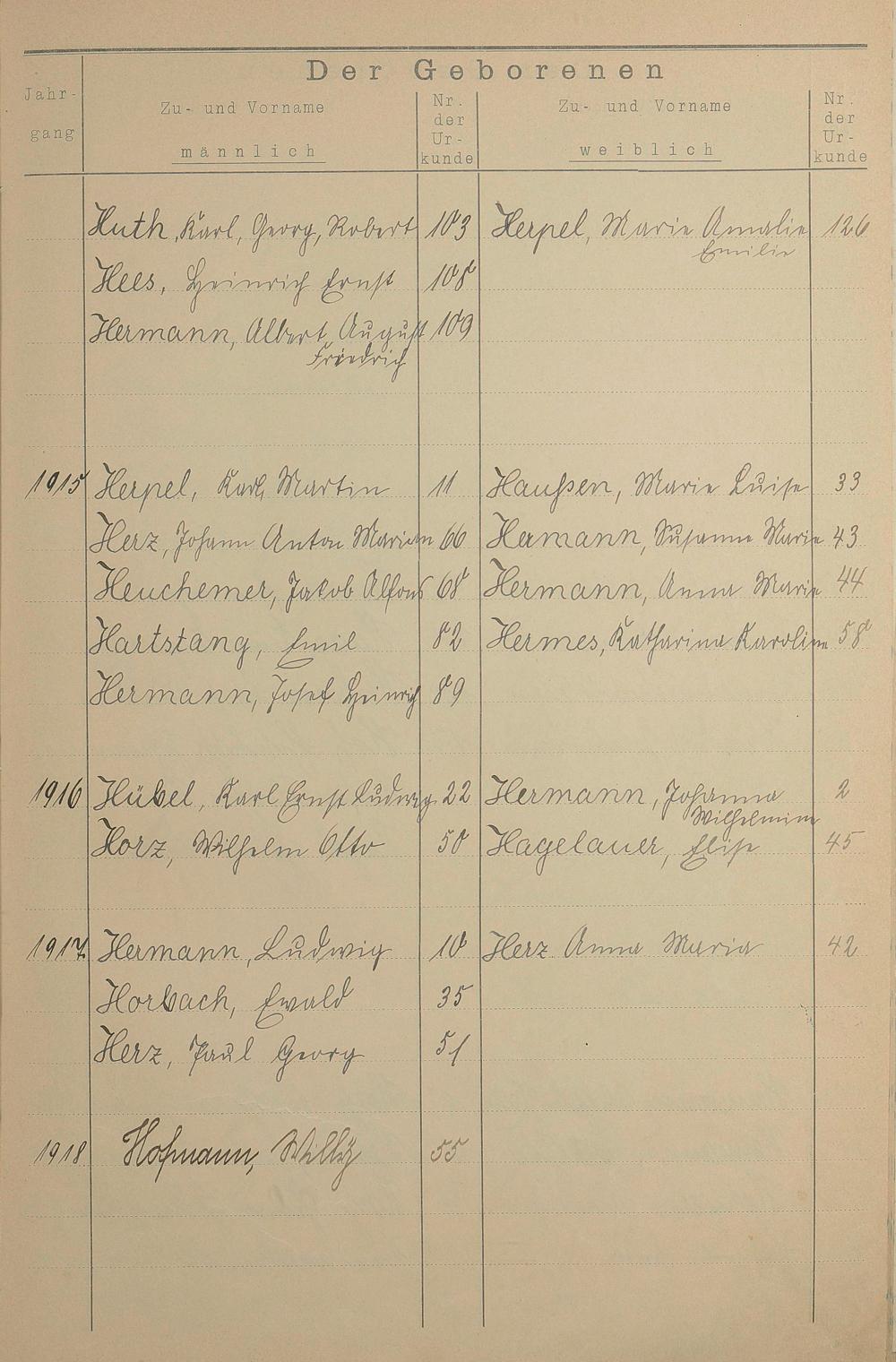 Register A - Z zum Geburtsregister 1901-1930