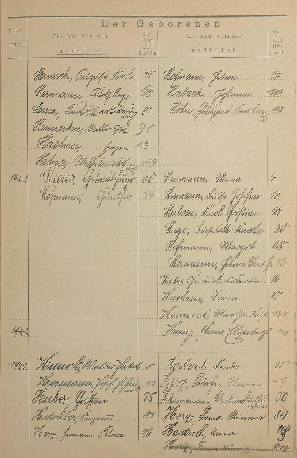 Register A - Z zum Geburtsregister 1901-1930
