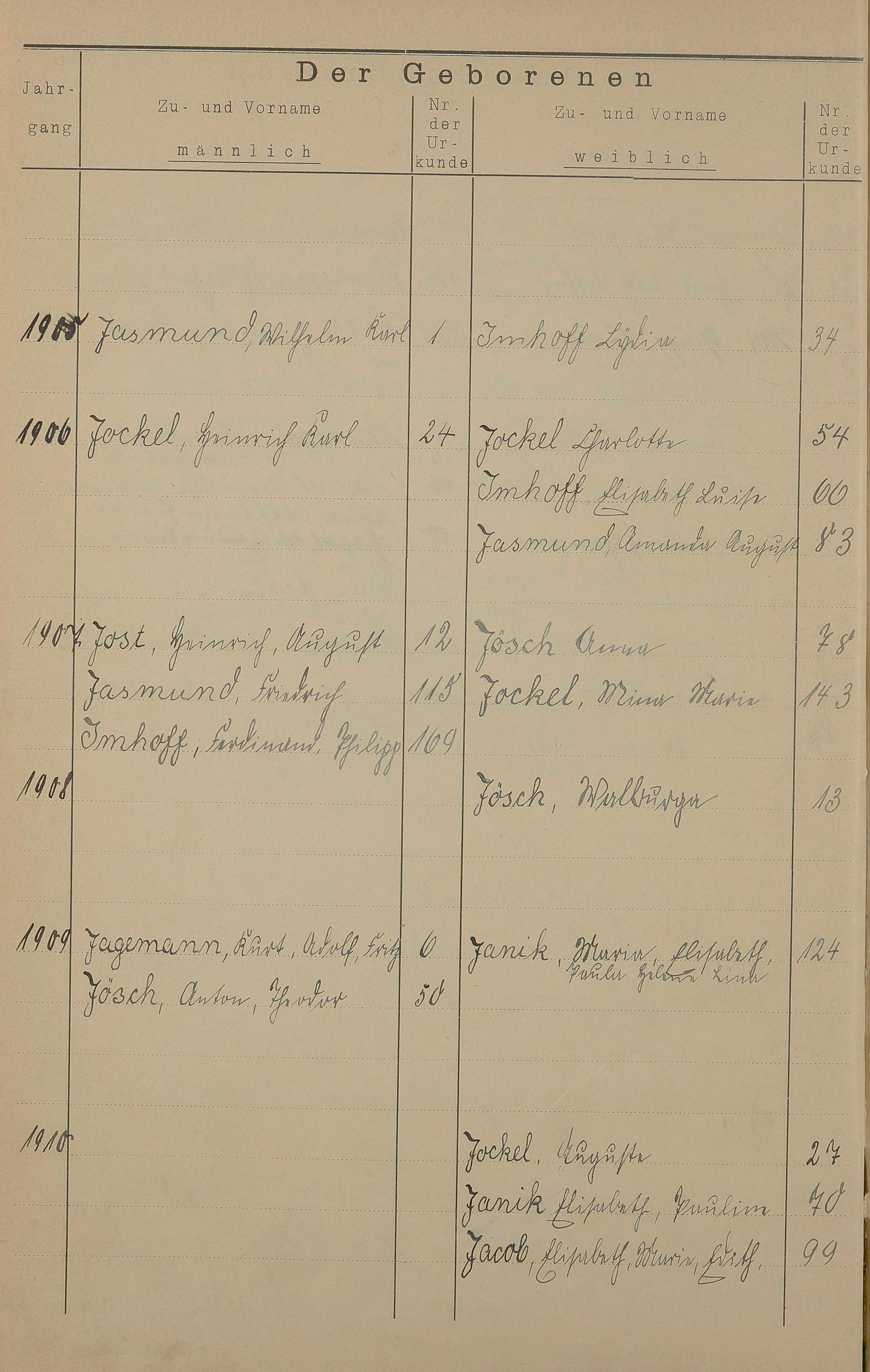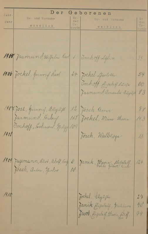 Register A - Z zum Geburtsregister 1901-1930