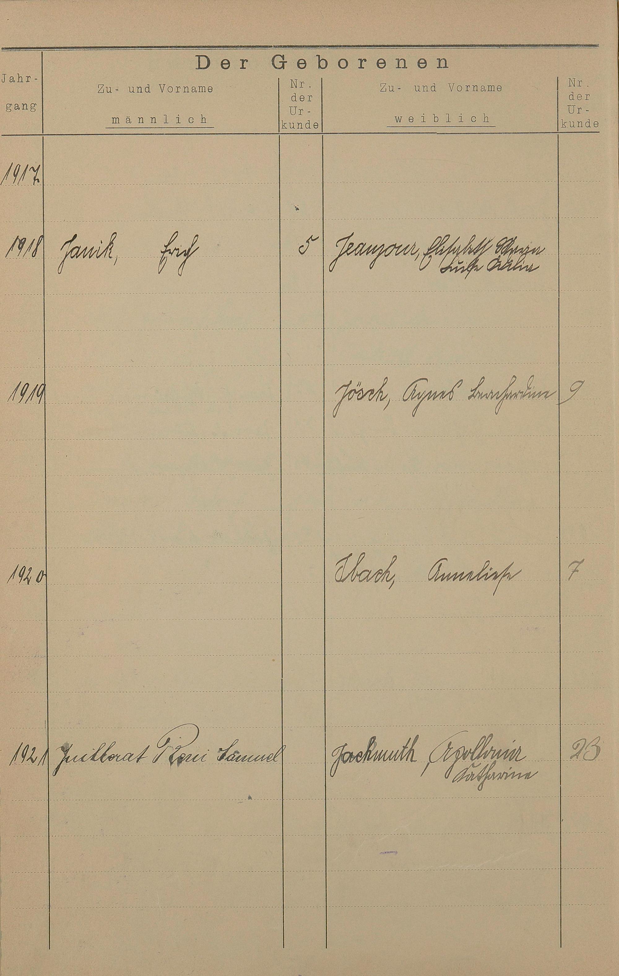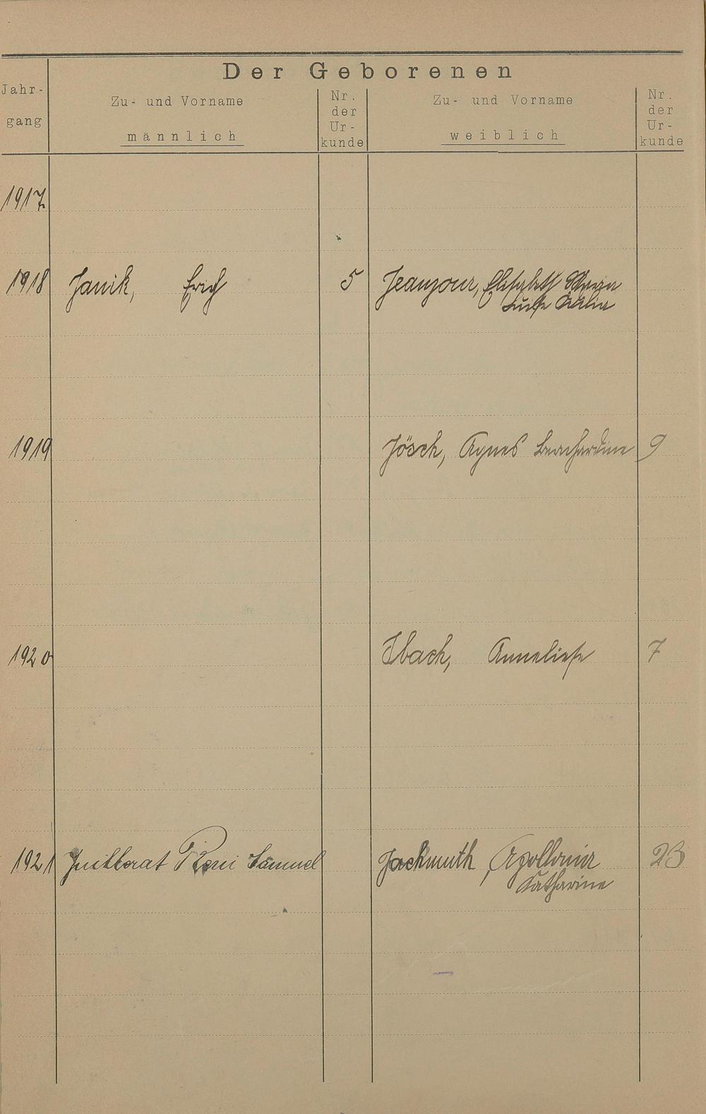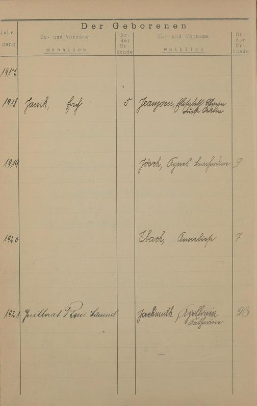 Register A - Z zum Geburtsregister 1901-1930