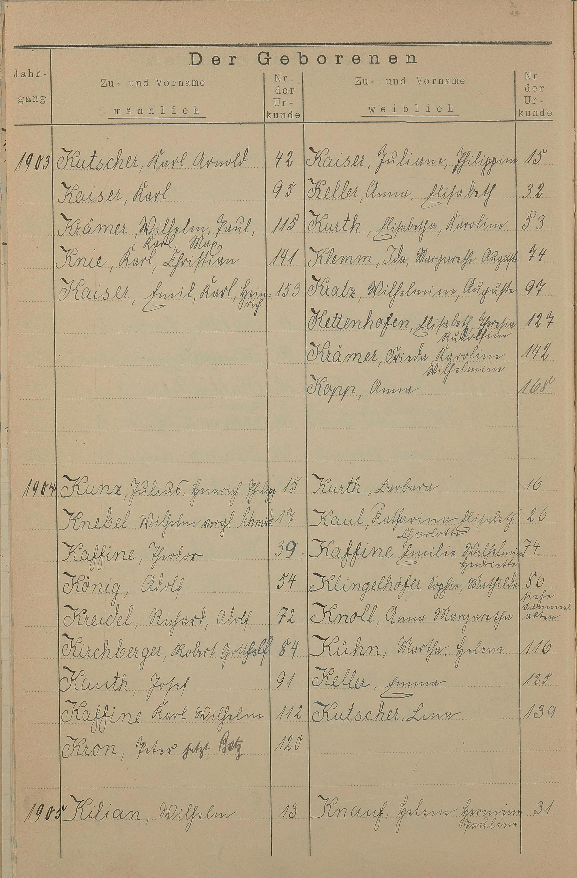 Register A - Z zum Geburtsregister 1901-1930