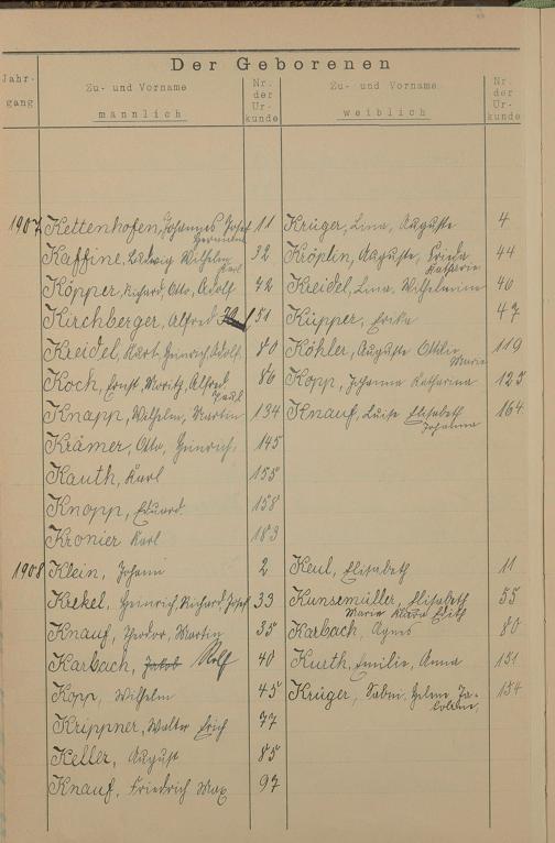 Register A - Z zum Geburtsregister 1901-1930