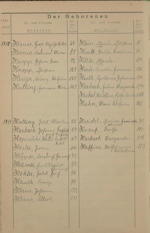 1555: Register A - Z zum Geburtsregister 1901-1930