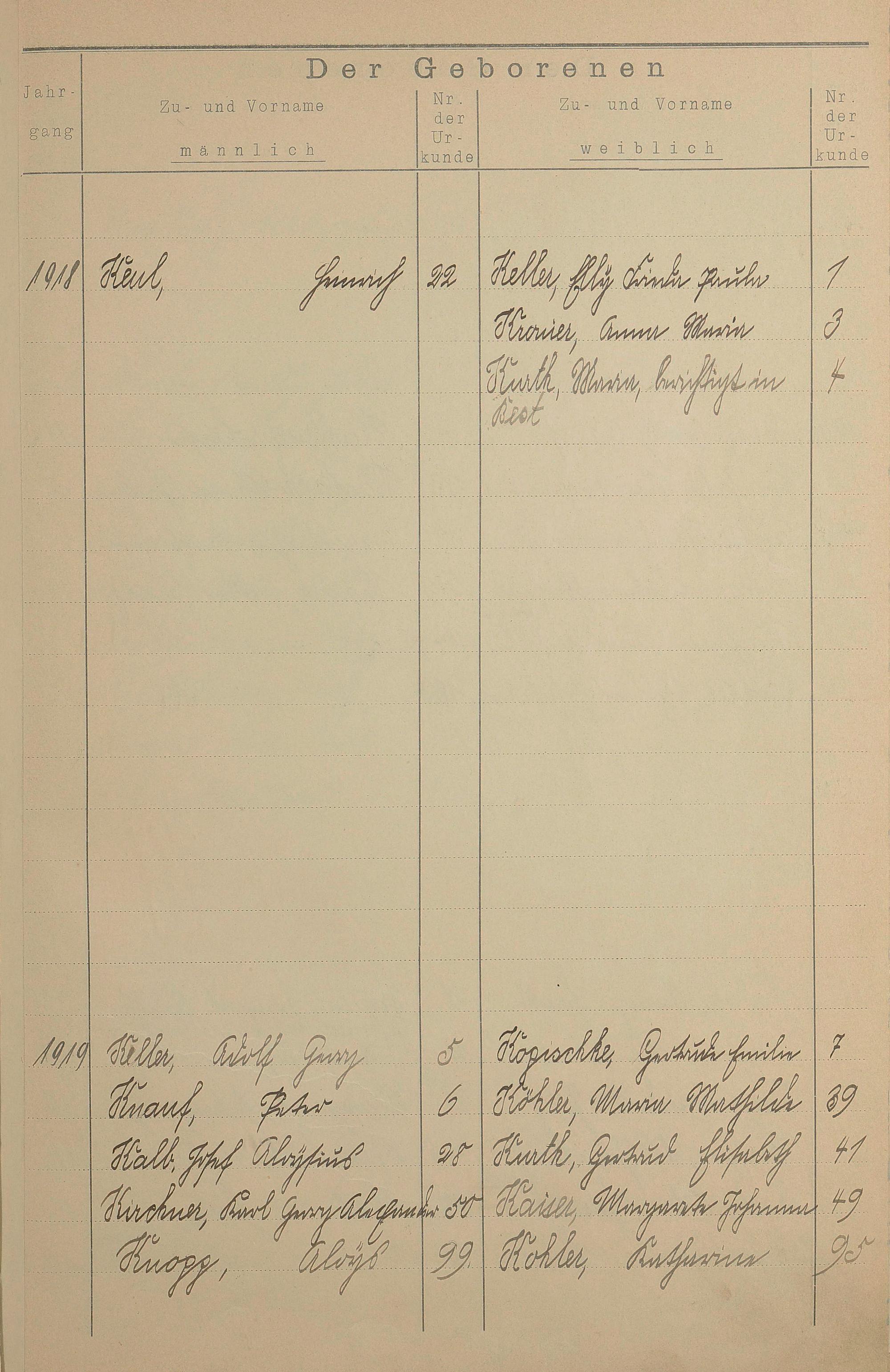 1555: Register A - Z zum Geburtsregister 1901-1930