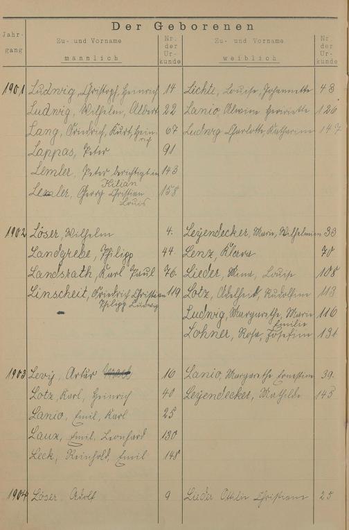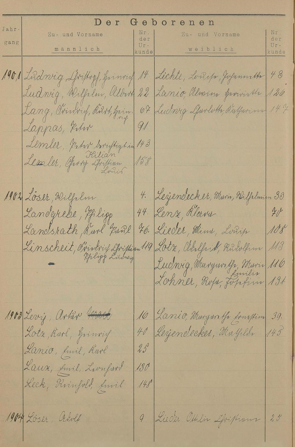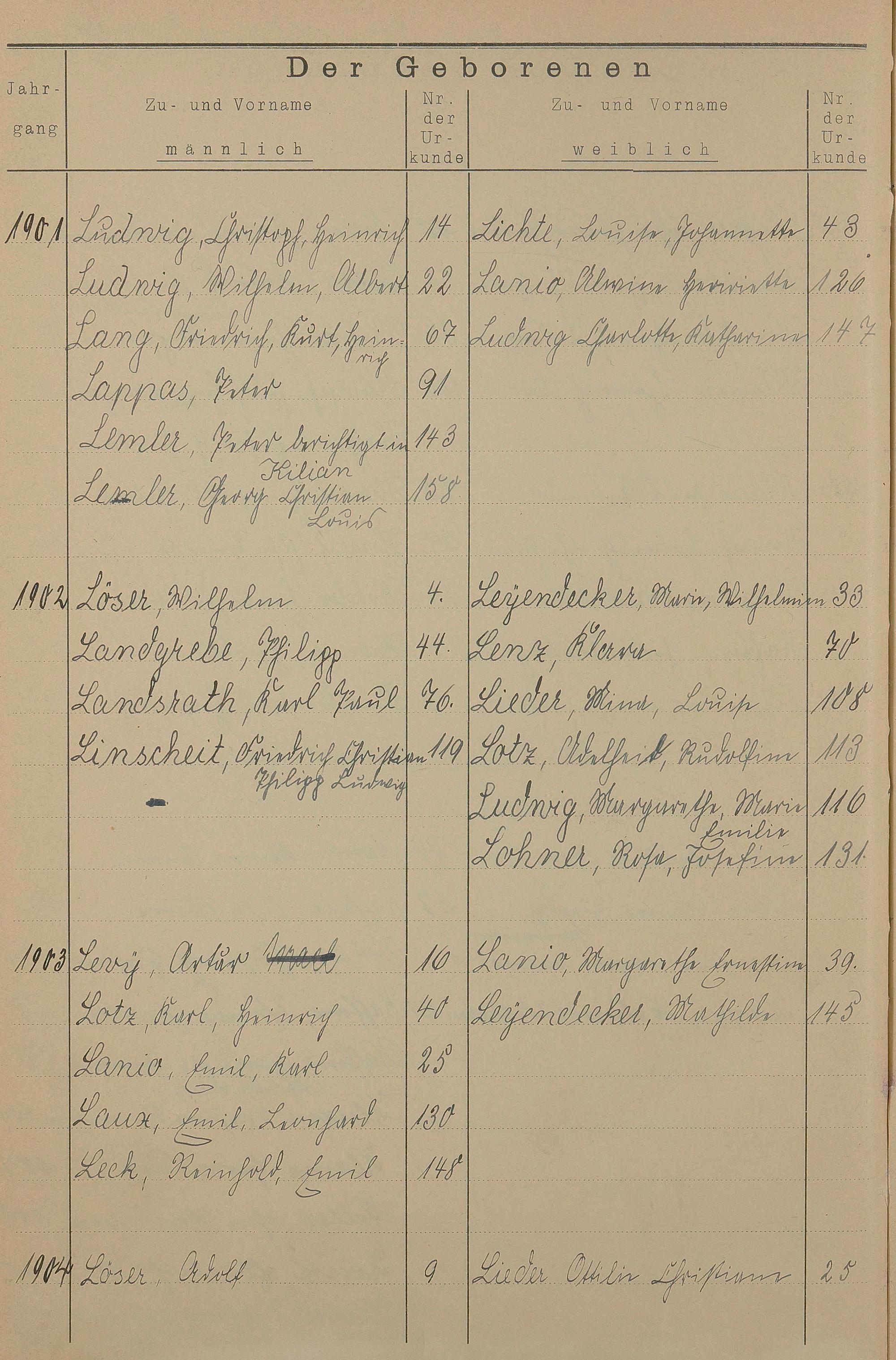 1555: Register A - Z zum Geburtsregister 1901-1930