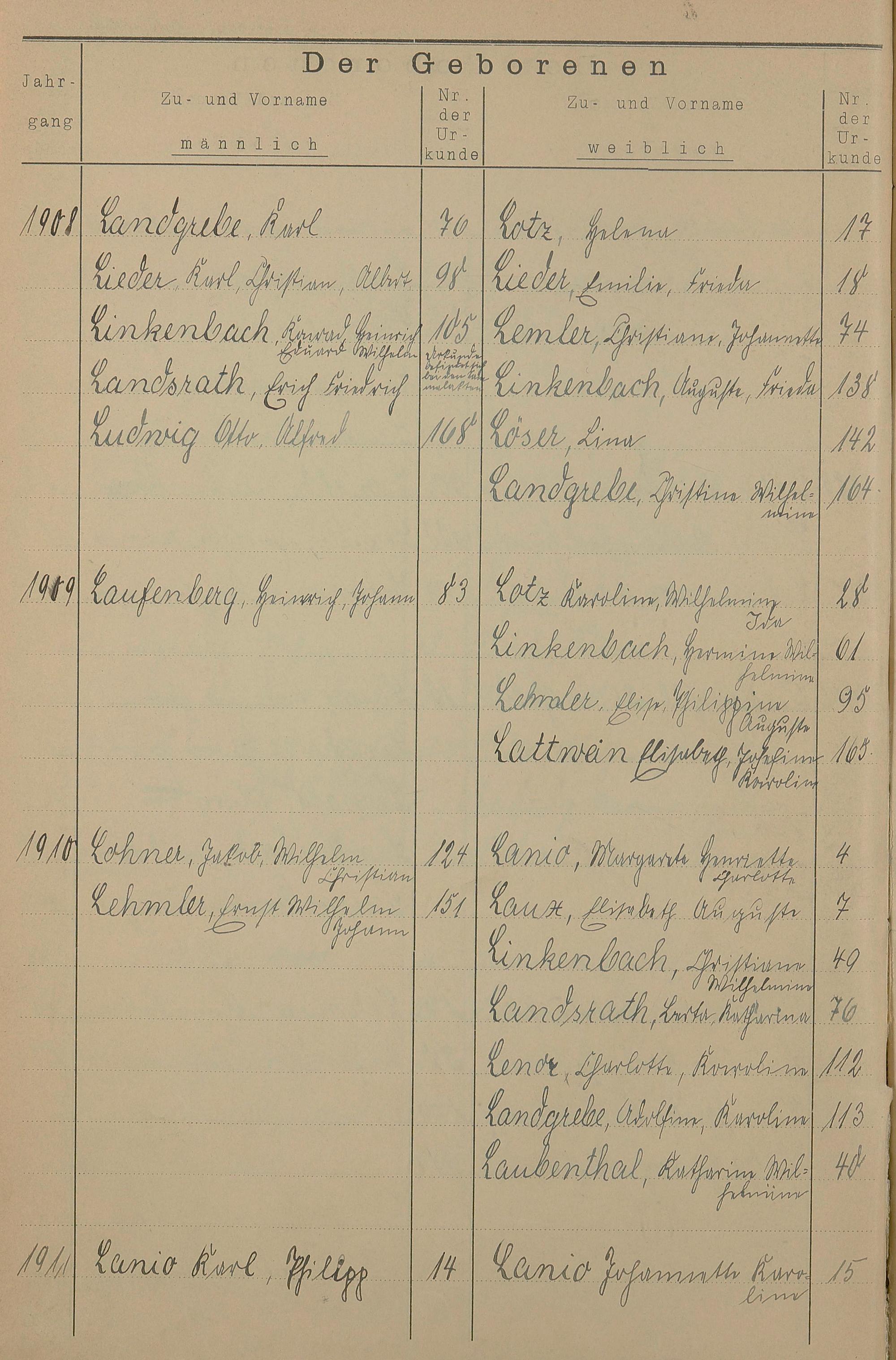 Register A - Z zum Geburtsregister 1901-1930
