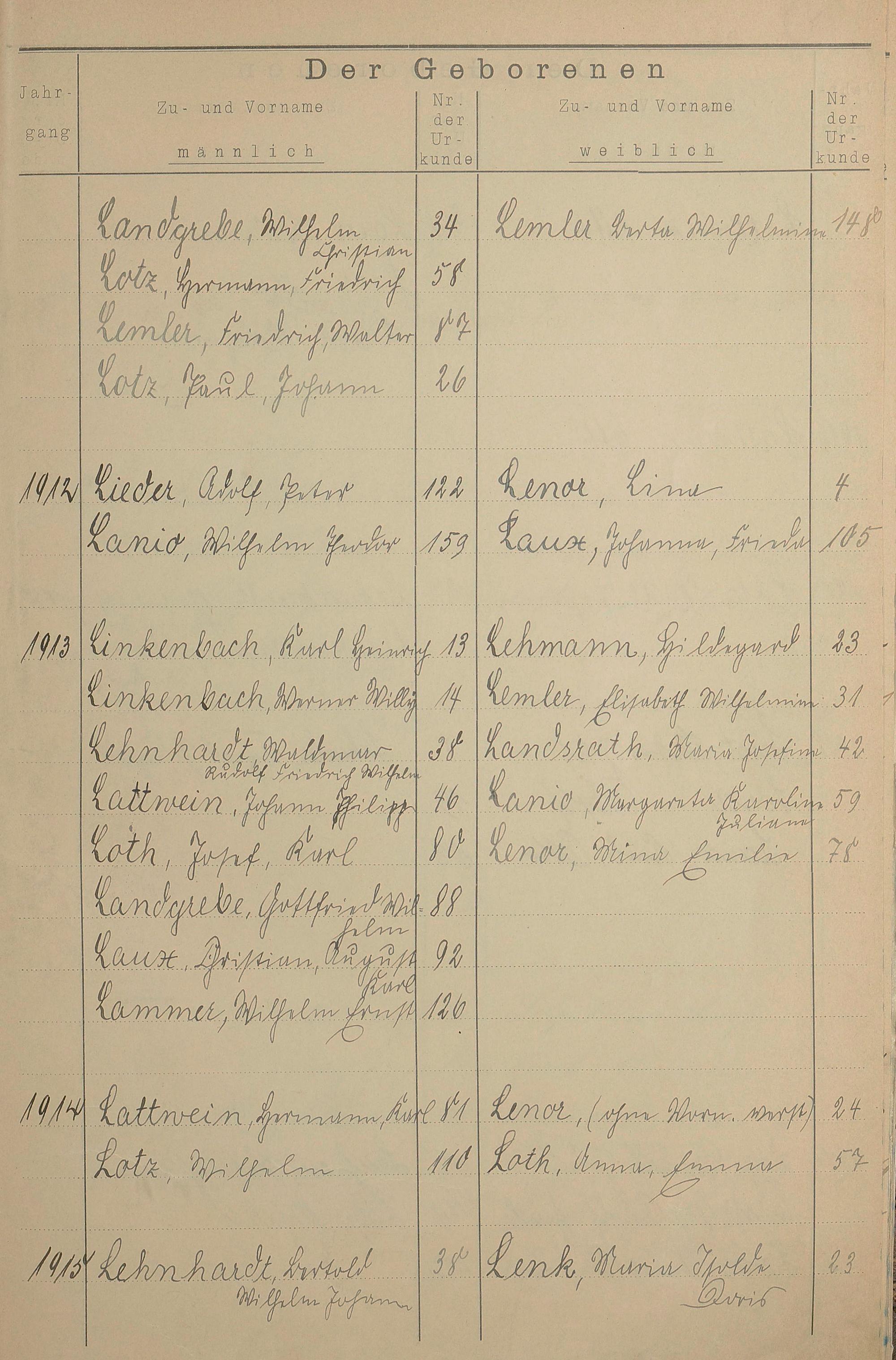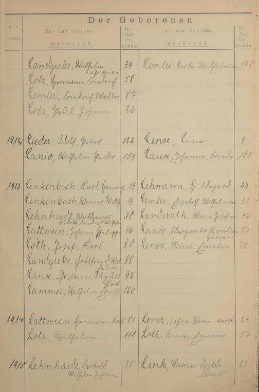 1555: Register A - Z zum Geburtsregister 1901-1930