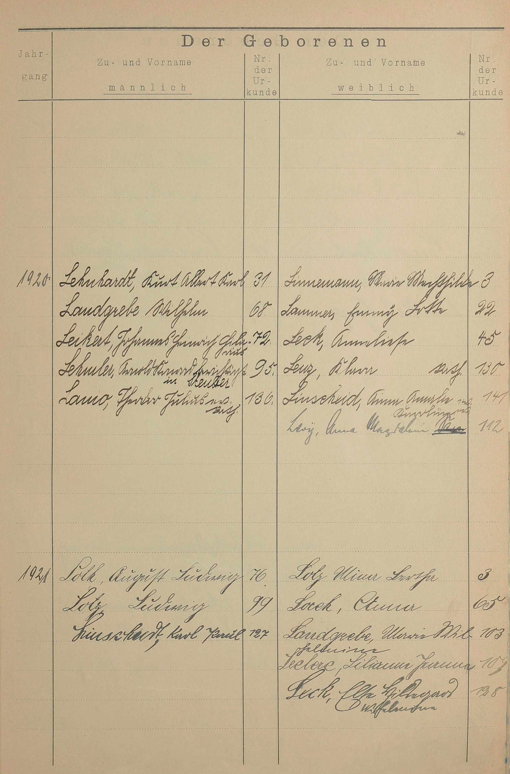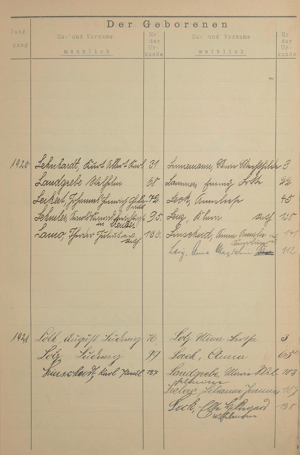 Register A - Z zum Geburtsregister 1901-1930