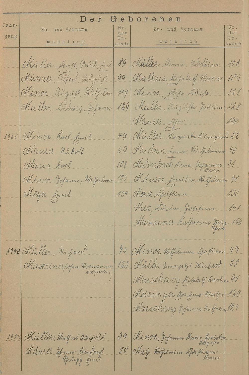 Register A - Z zum Geburtsregister 1901-1930