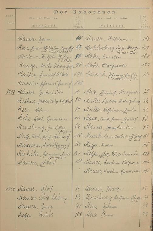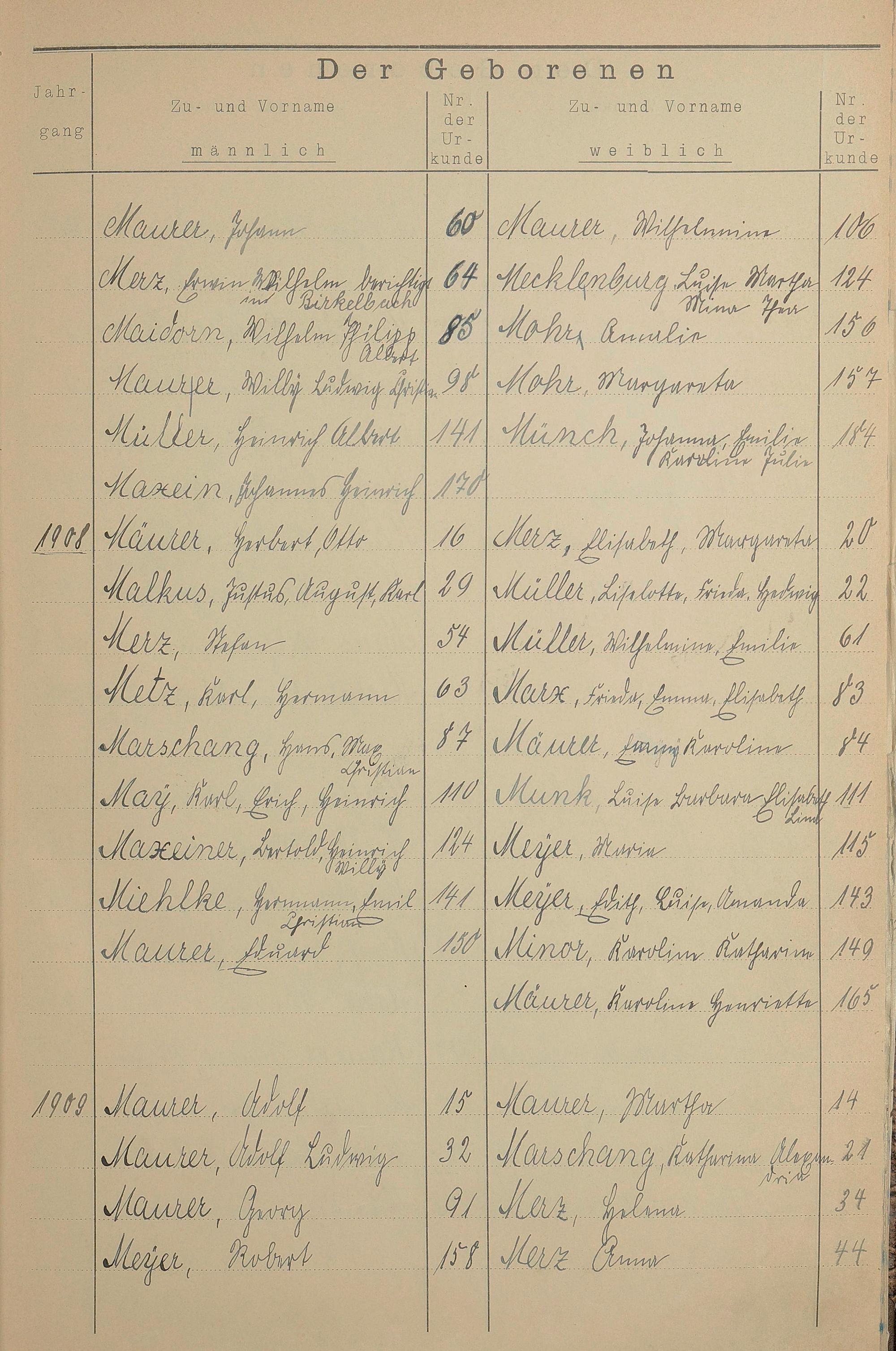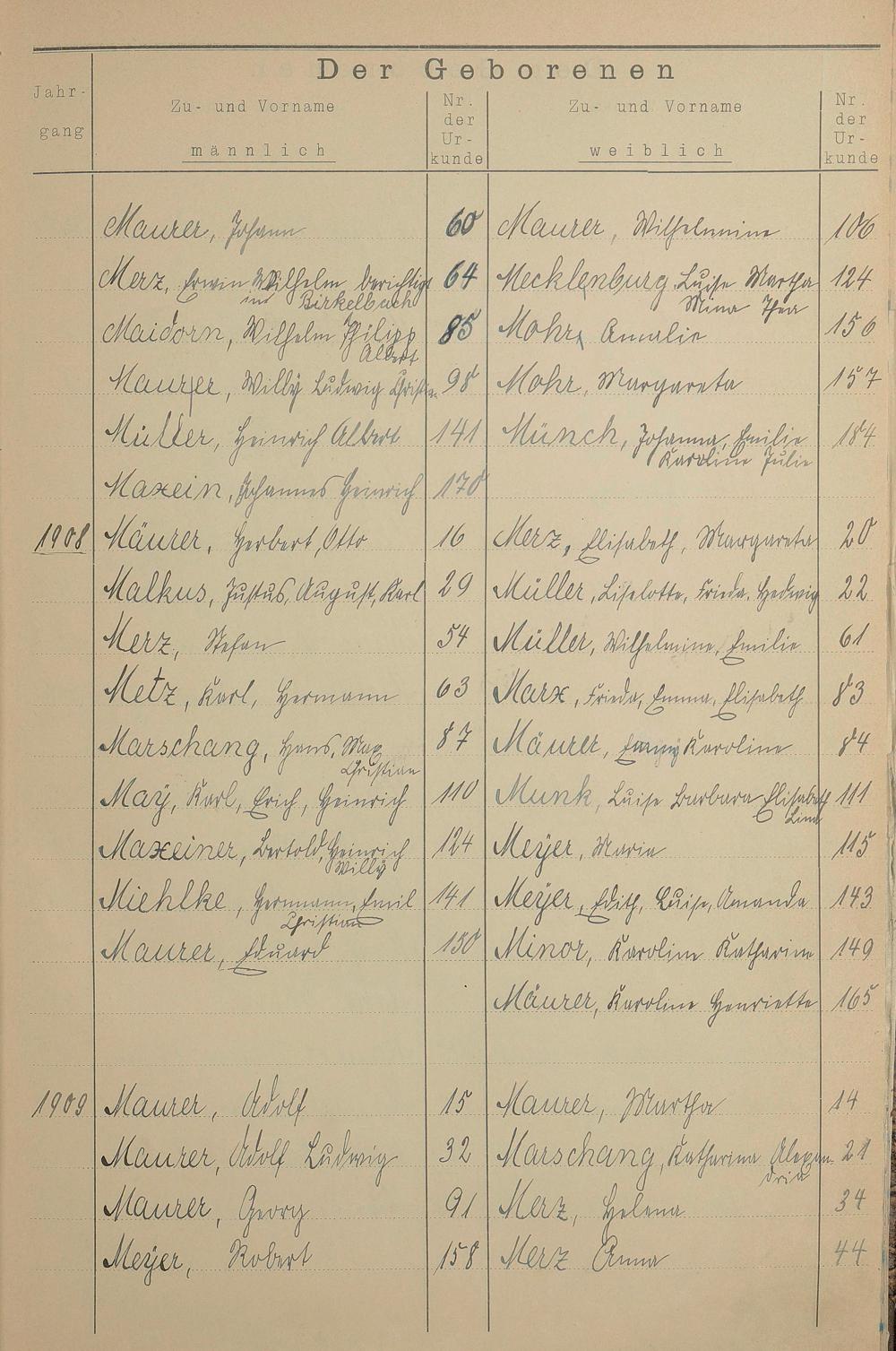 1555: Register A - Z zum Geburtsregister 1901-1930