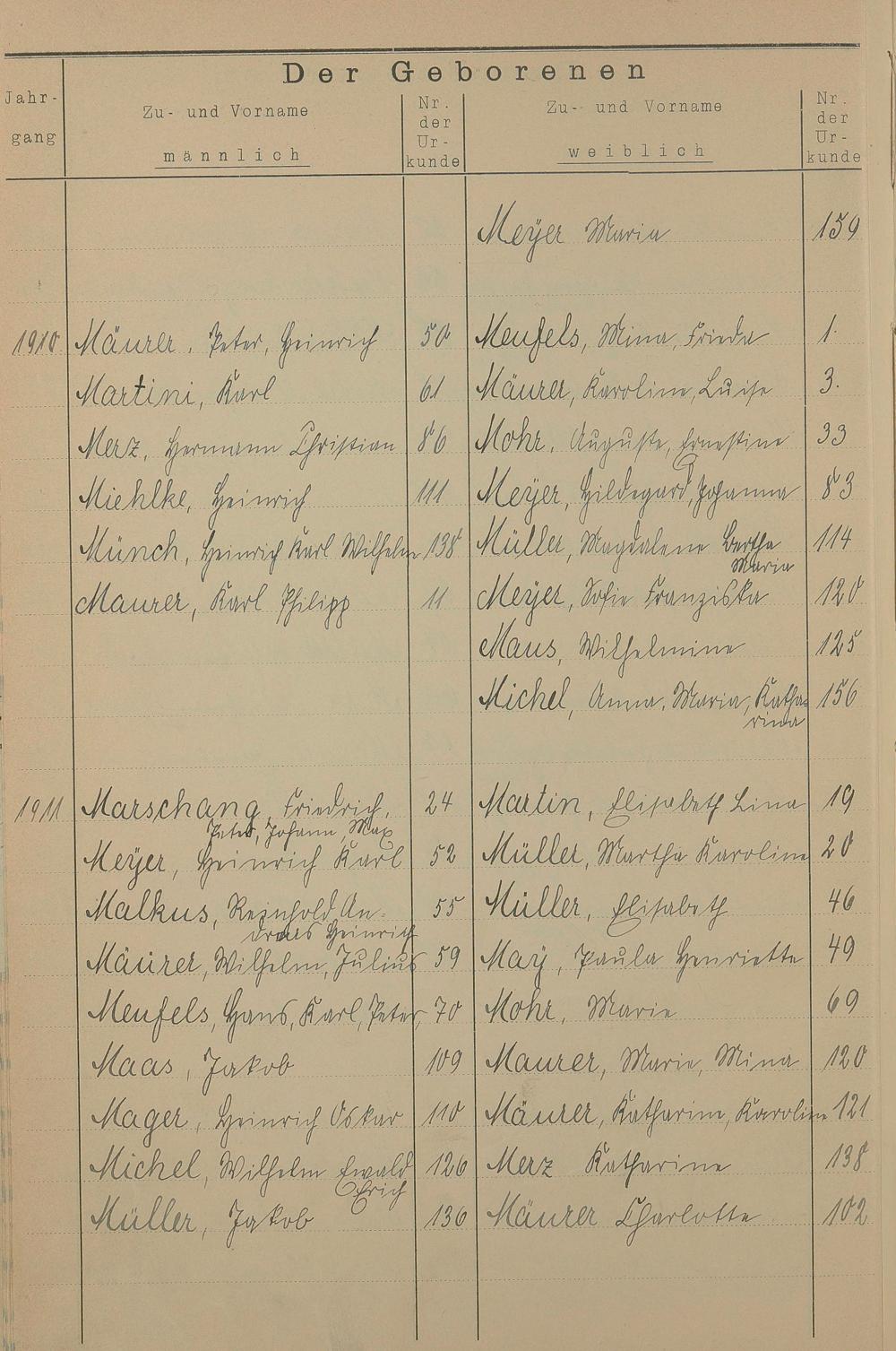 1555: Register A - Z zum Geburtsregister 1901-1930