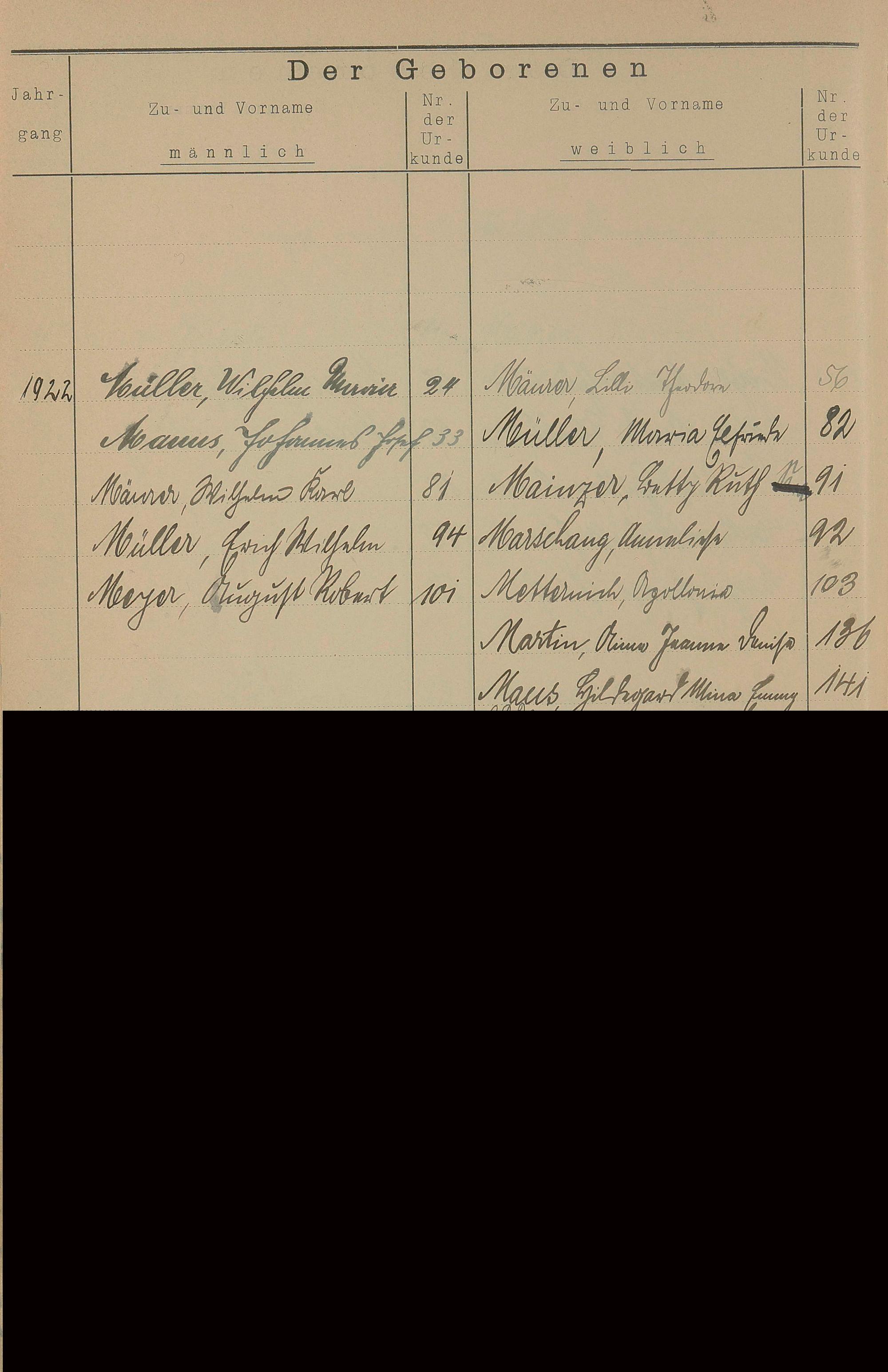 Register A - Z zum Geburtsregister 1901-1930