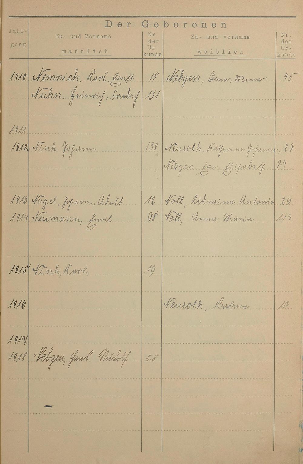 1555: Register A - Z zum Geburtsregister 1901-1930