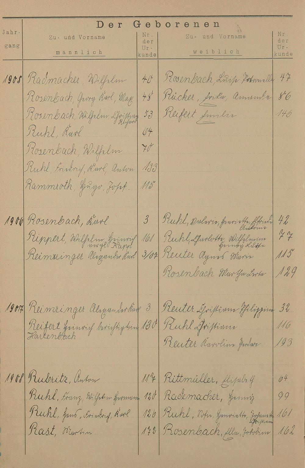 1555: Register A - Z zum Geburtsregister 1901-1930