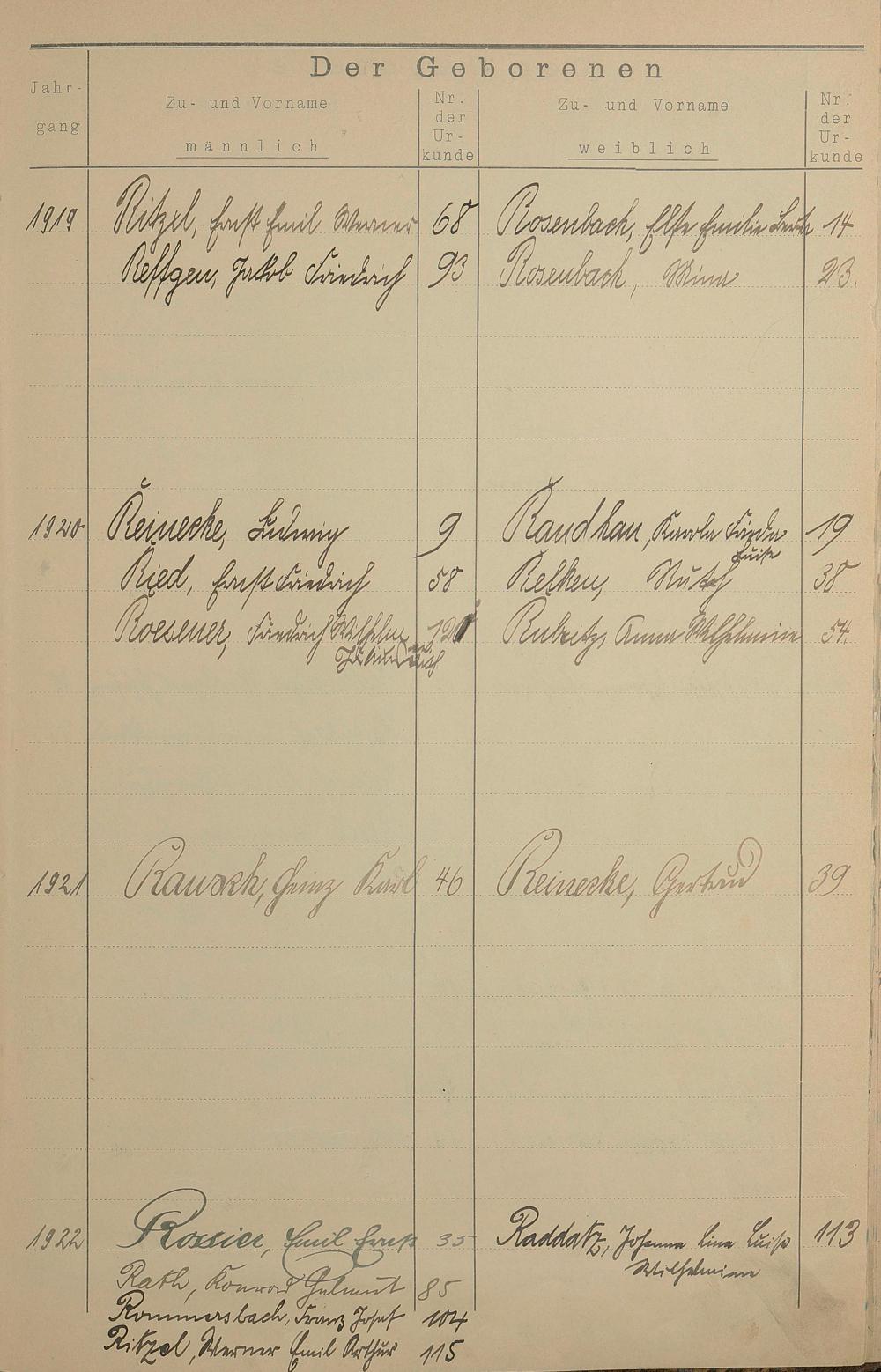 Register A - Z zum Geburtsregister 1901-1930