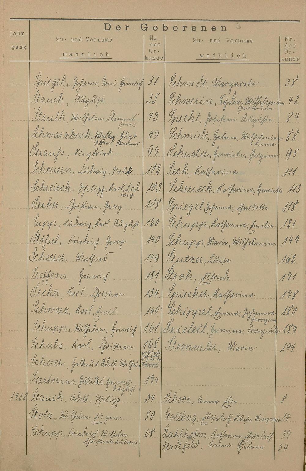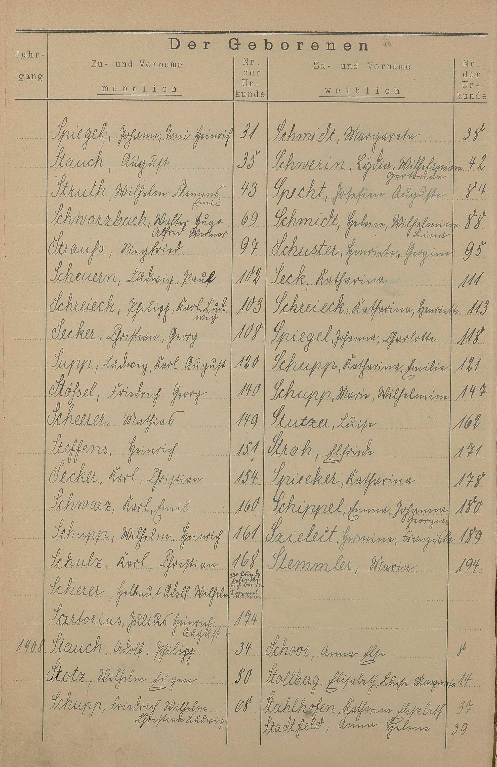 1555: Register A - Z zum Geburtsregister 1901-1930