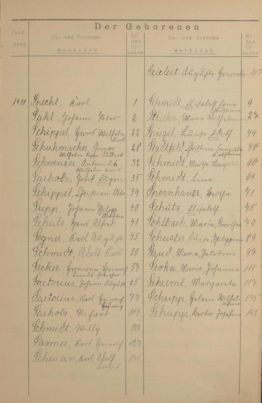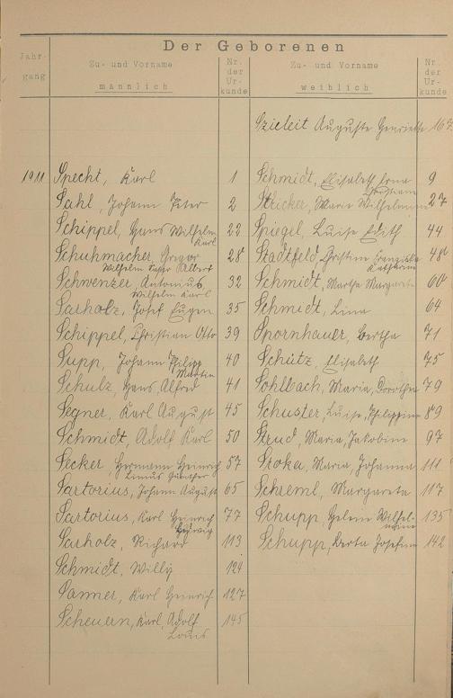 1555: Register A - Z zum Geburtsregister 1901-1930