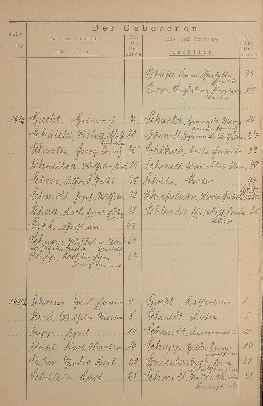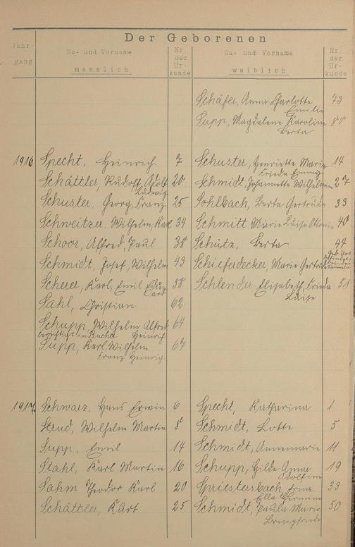 1555: Register A - Z zum Geburtsregister 1901-1930