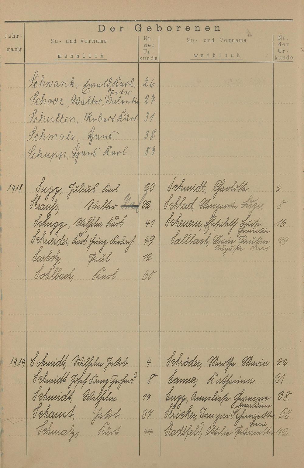 Register A - Z zum Geburtsregister 1901-1930