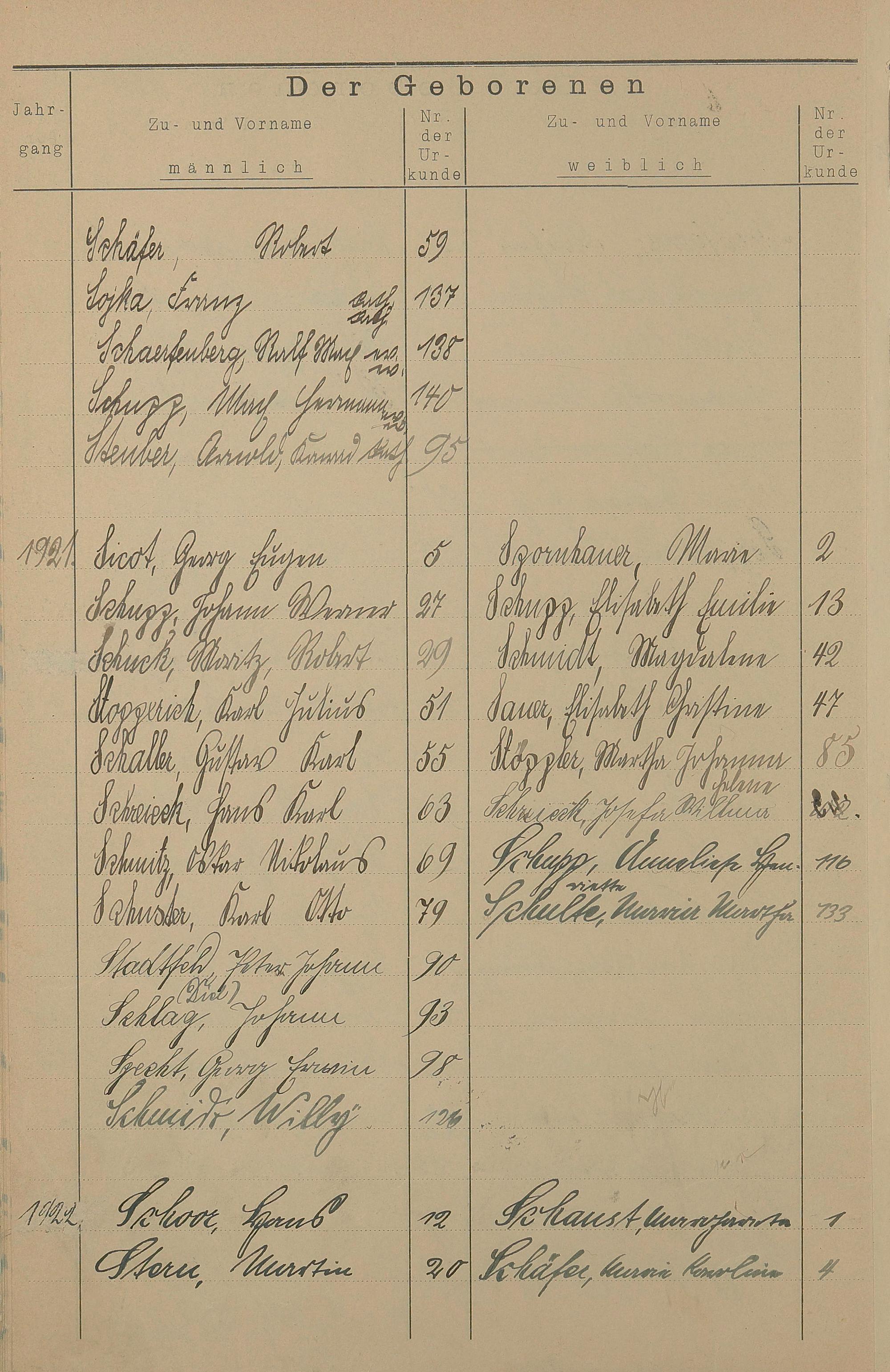 1555: Register A - Z zum Geburtsregister 1901-1930
