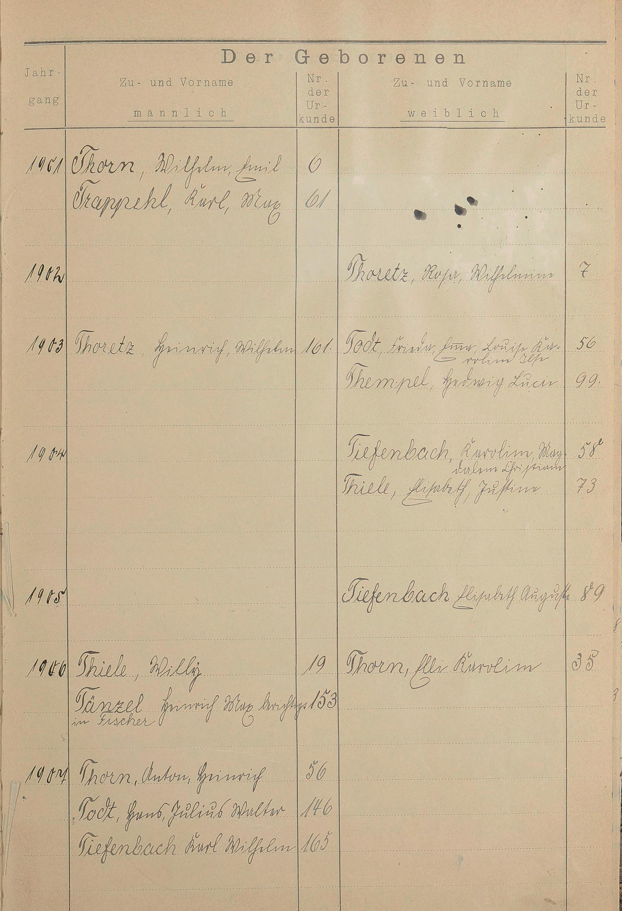 Register A - Z zum Geburtsregister 1901-1930