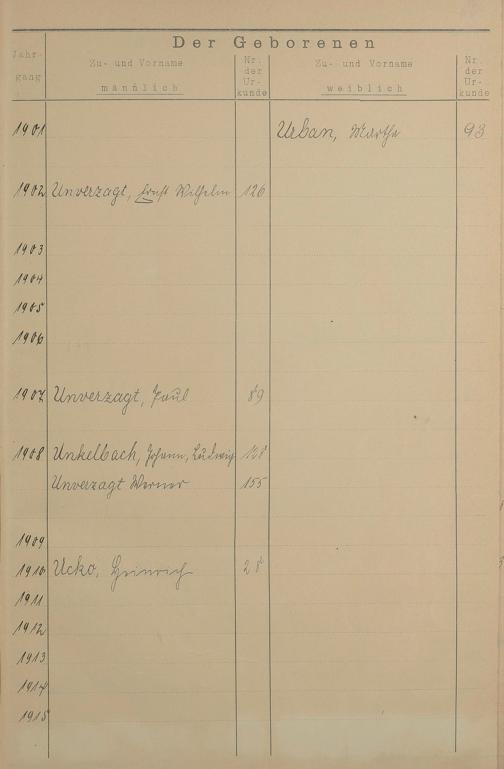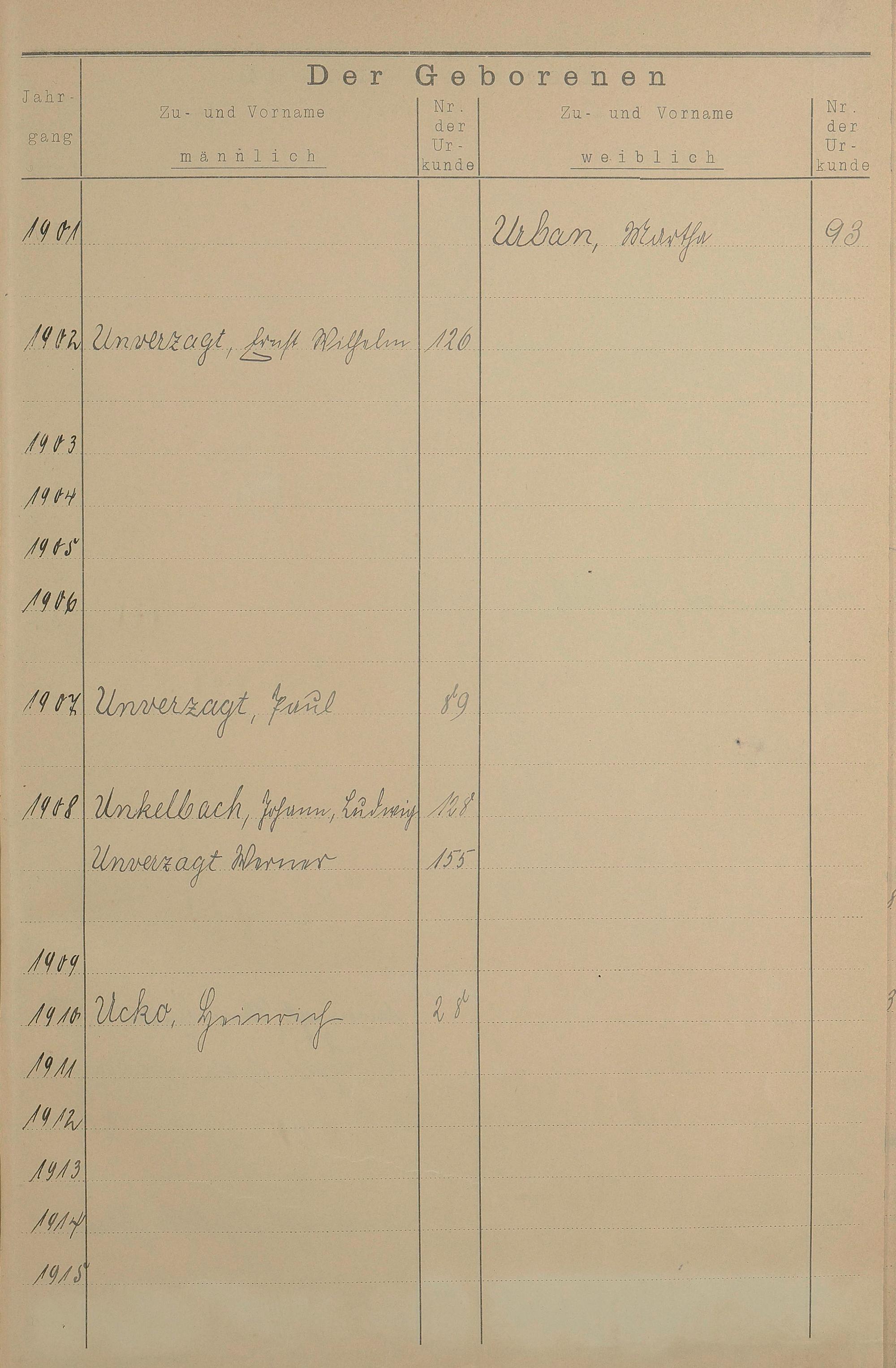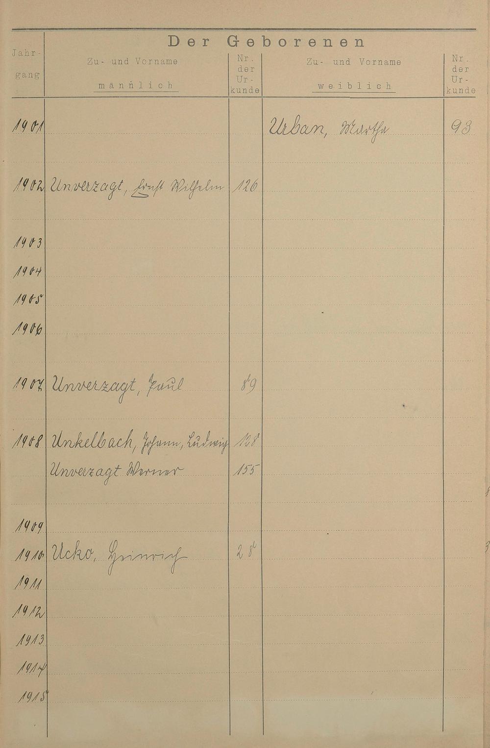 1555: Register A - Z zum Geburtsregister 1901-1930