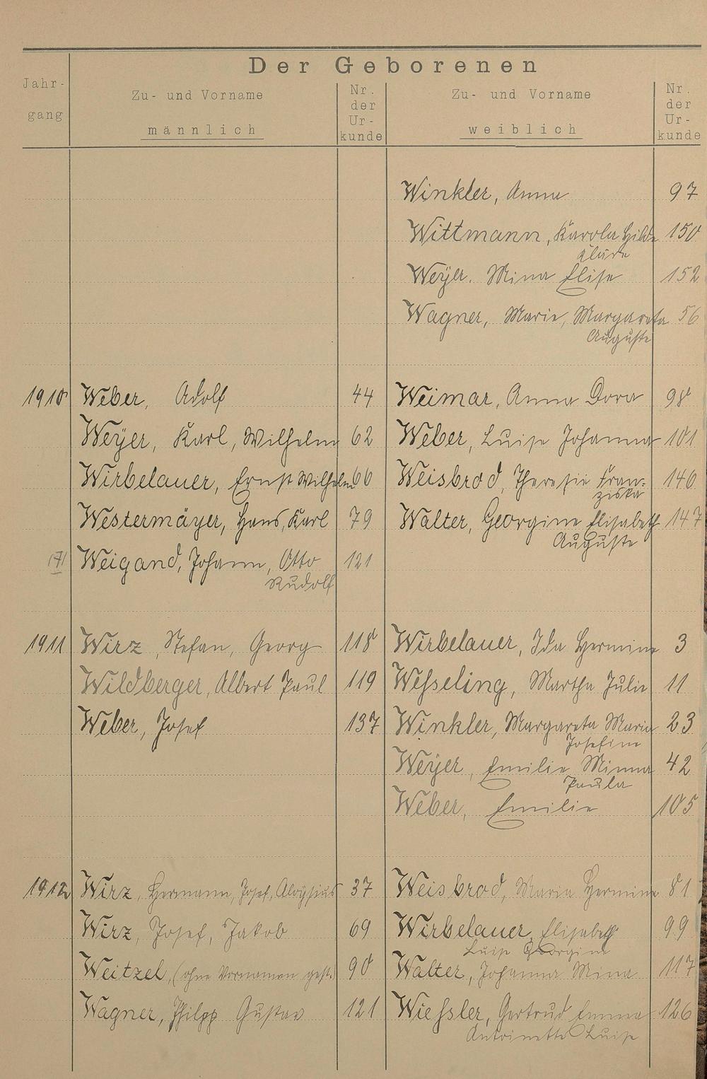 1555: Register A - Z zum Geburtsregister 1901-1930