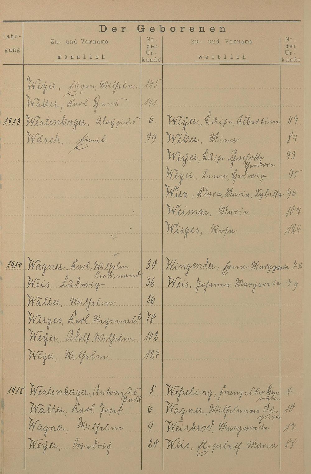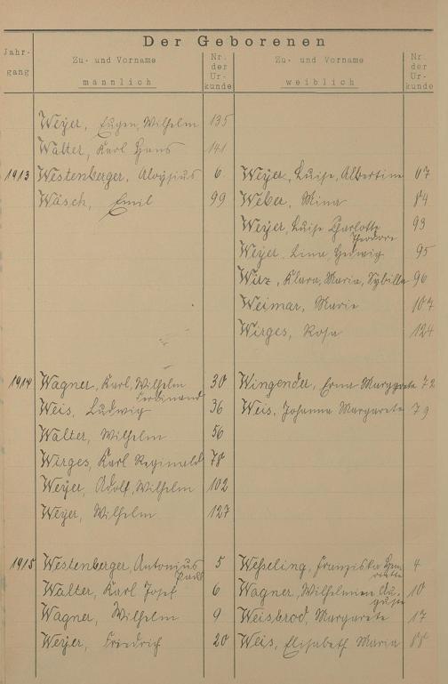 Register A - Z zum Geburtsregister 1901-1930