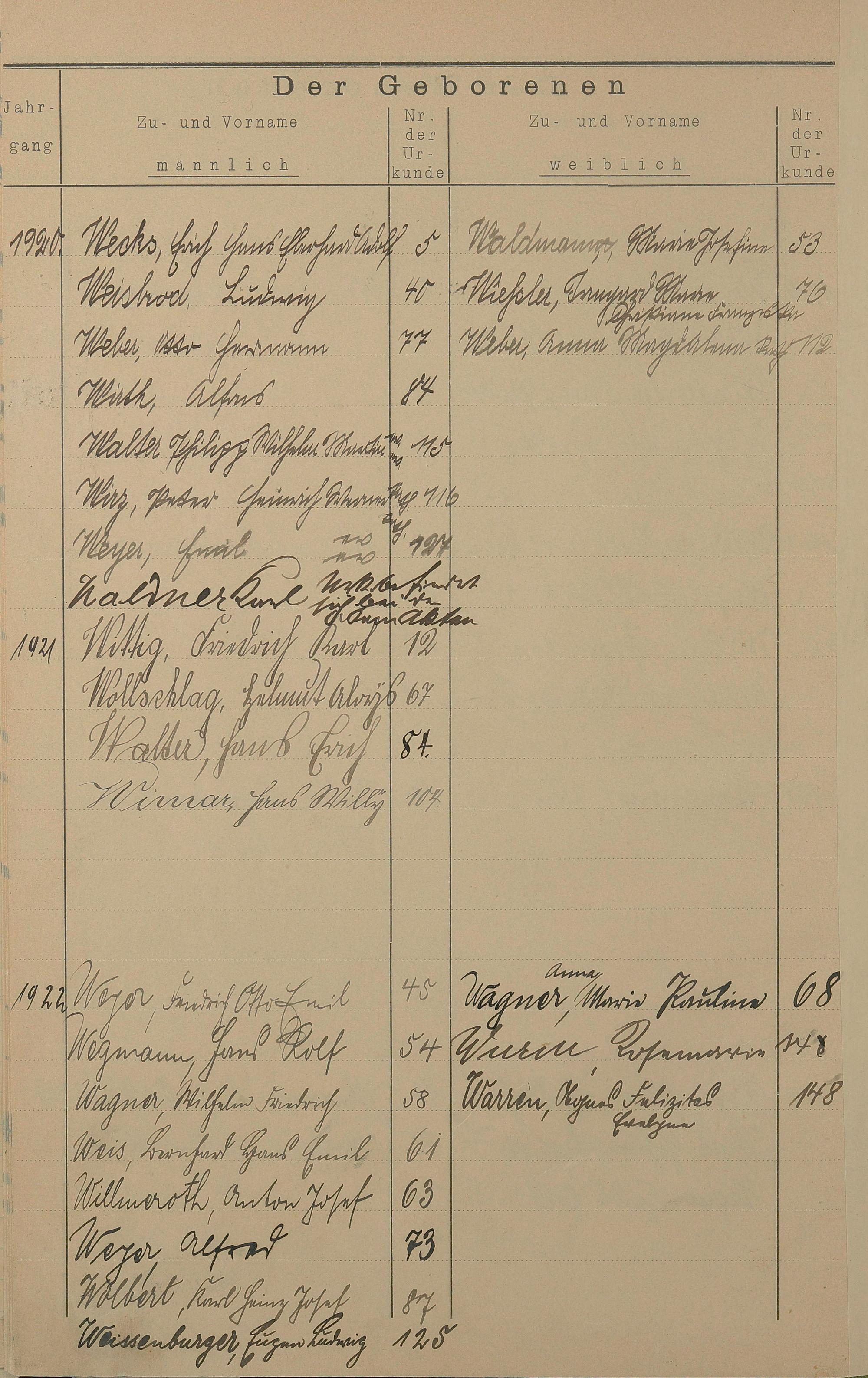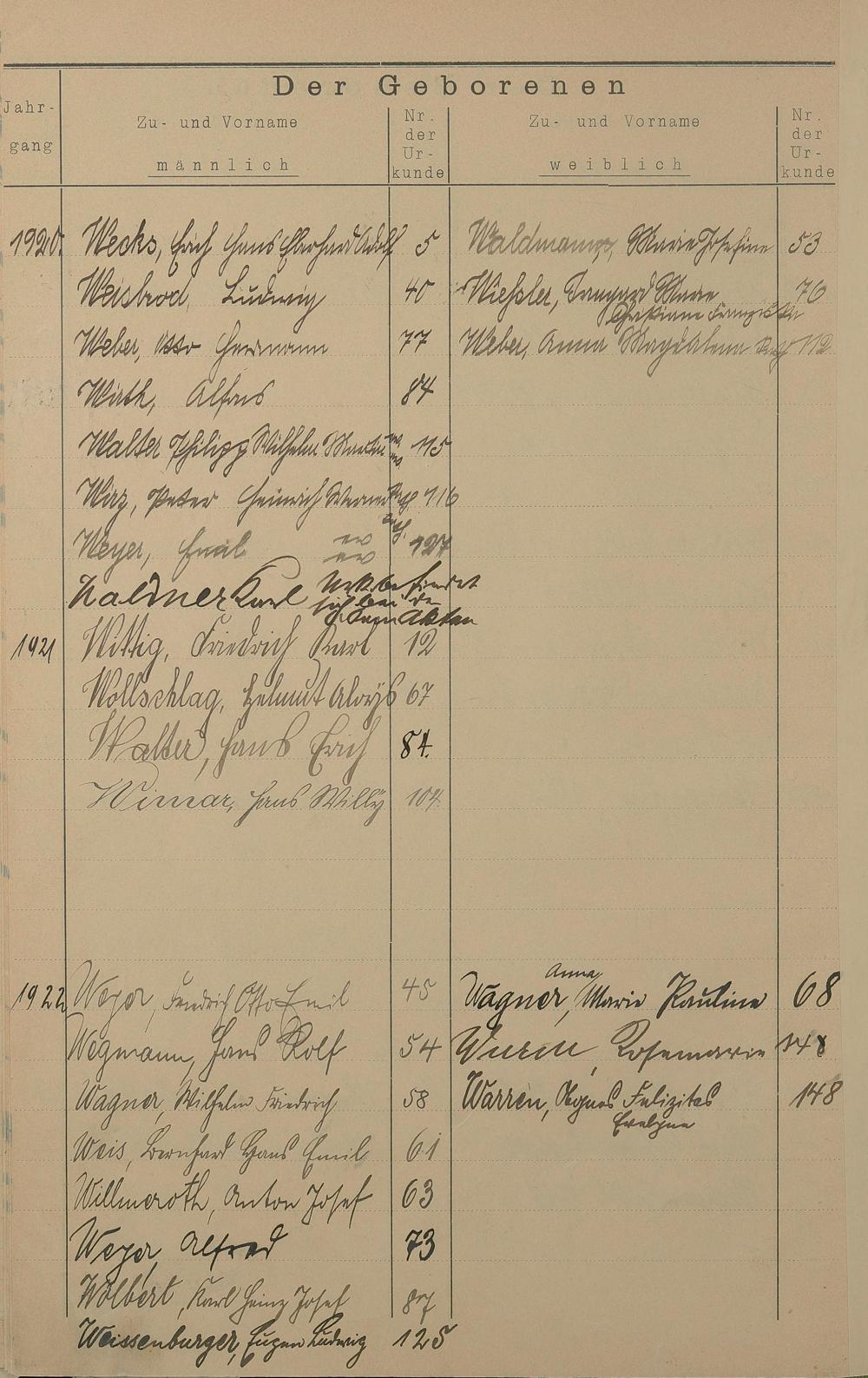 1555: Register A - Z zum Geburtsregister 1901-1930