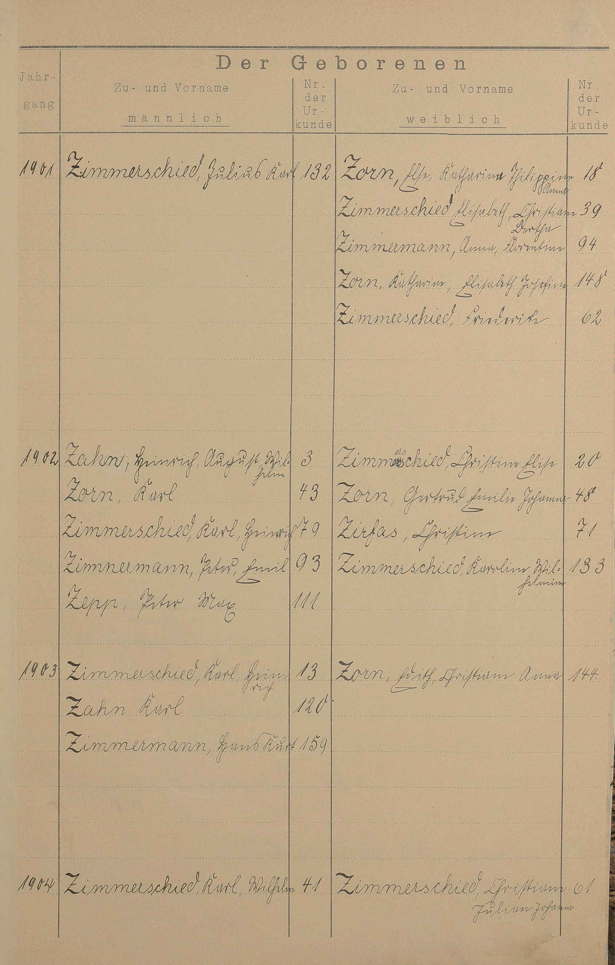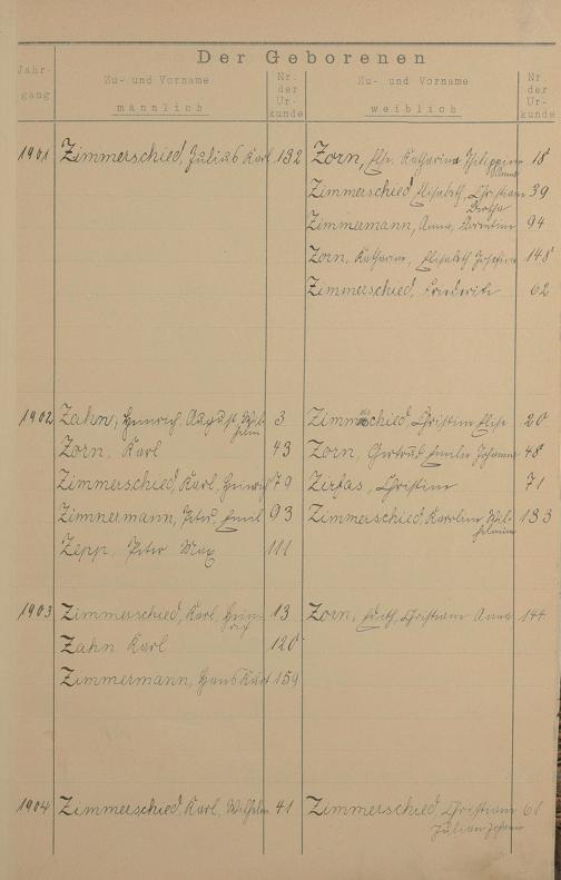 1555: Register A - Z zum Geburtsregister 1901-1930
