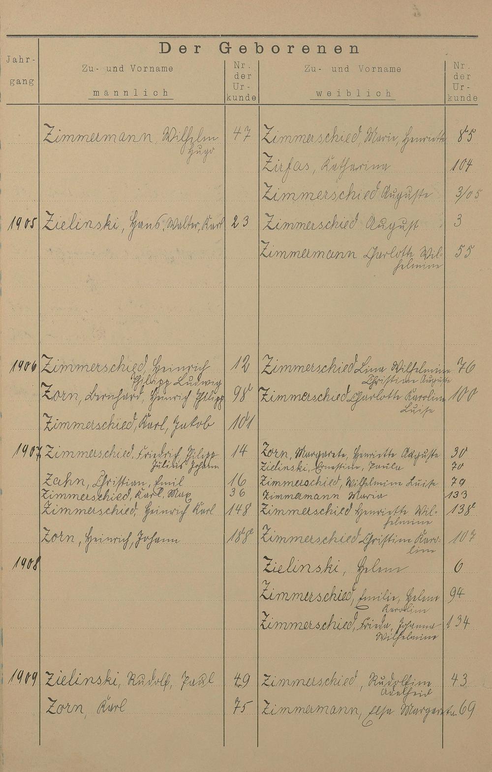 Register A - Z zum Geburtsregister 1901-1930
