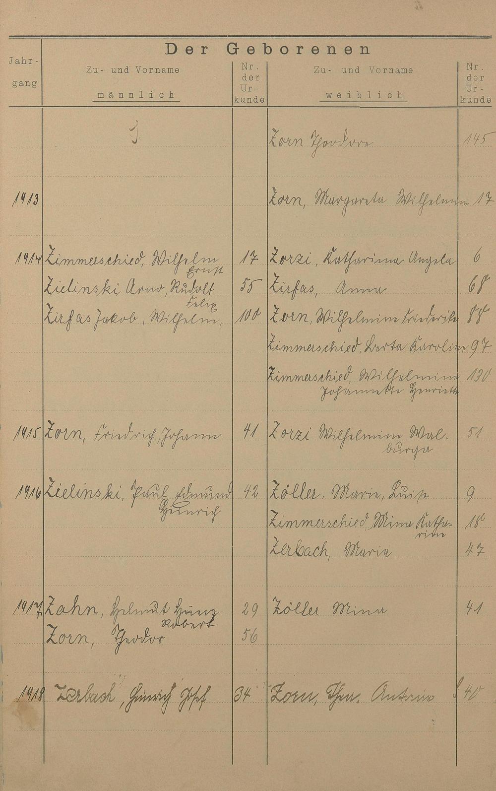 Register A - Z zum Geburtsregister 1901-1930
