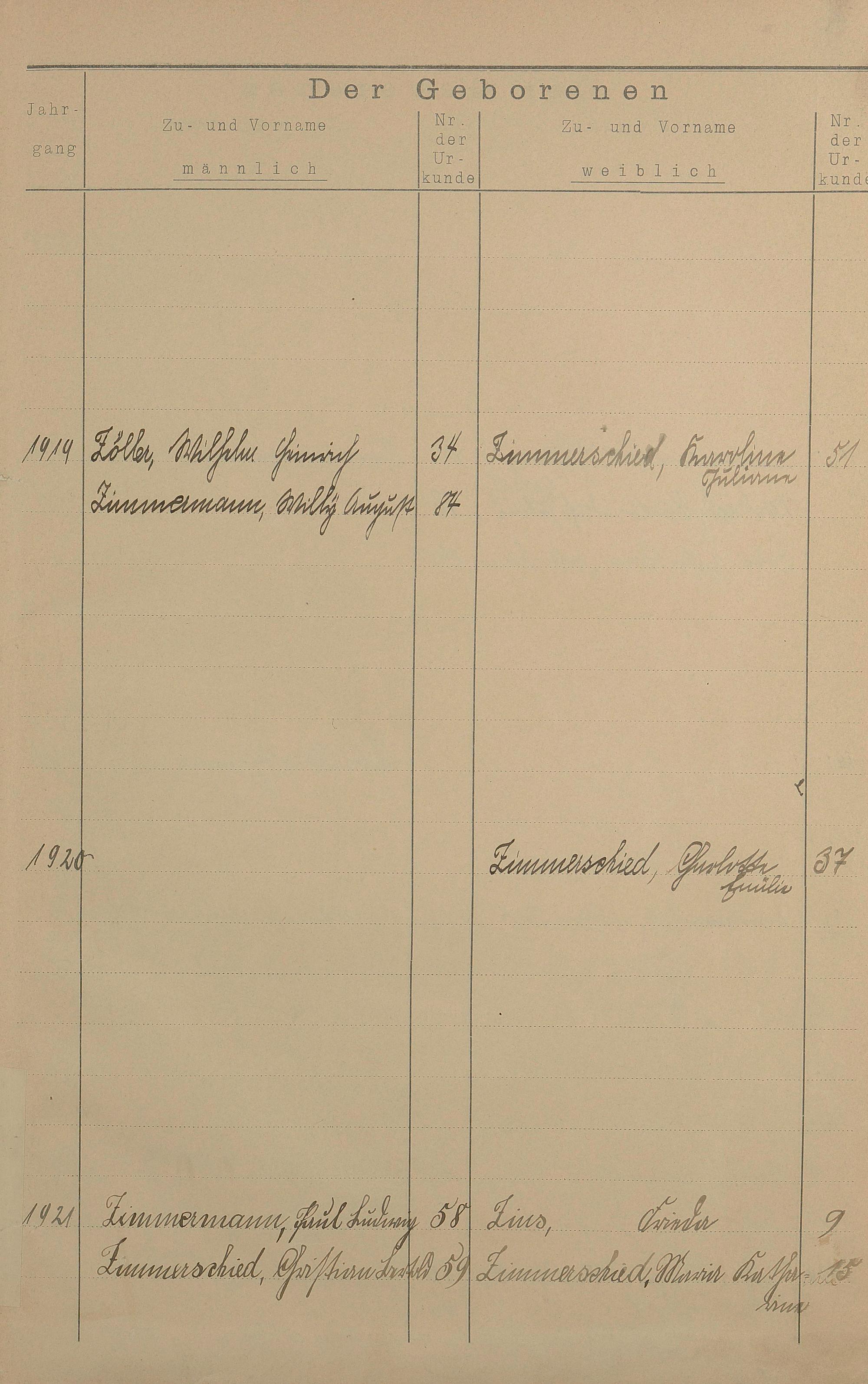 1555: Register A - Z zum Geburtsregister 1901-1930