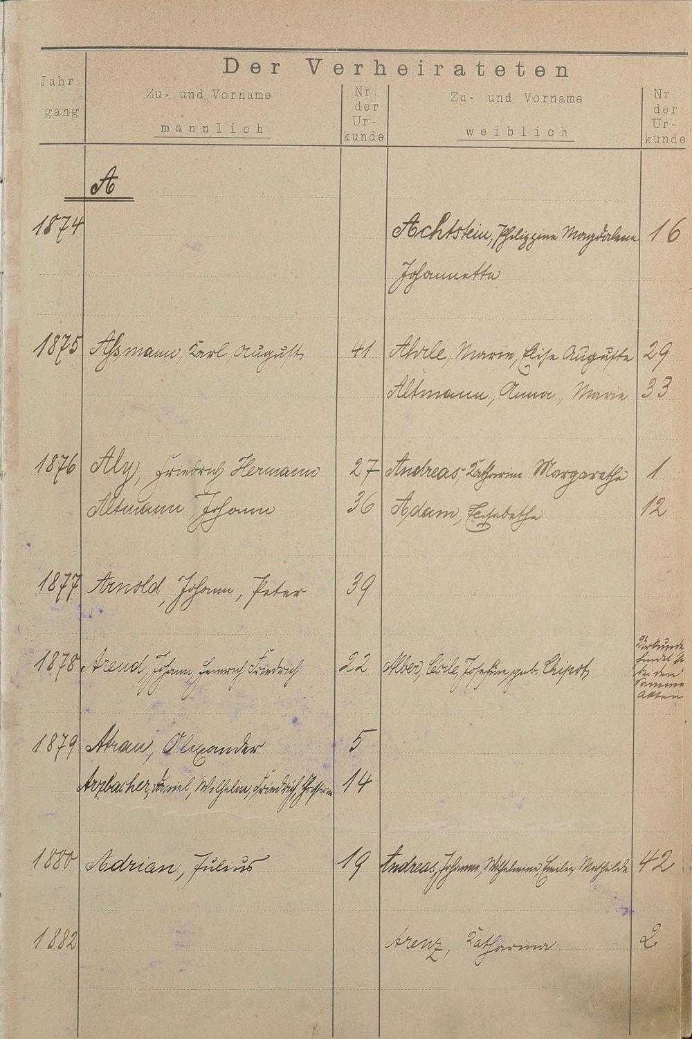 1559: Register A - Z zum Heiratsregister 1874-1900