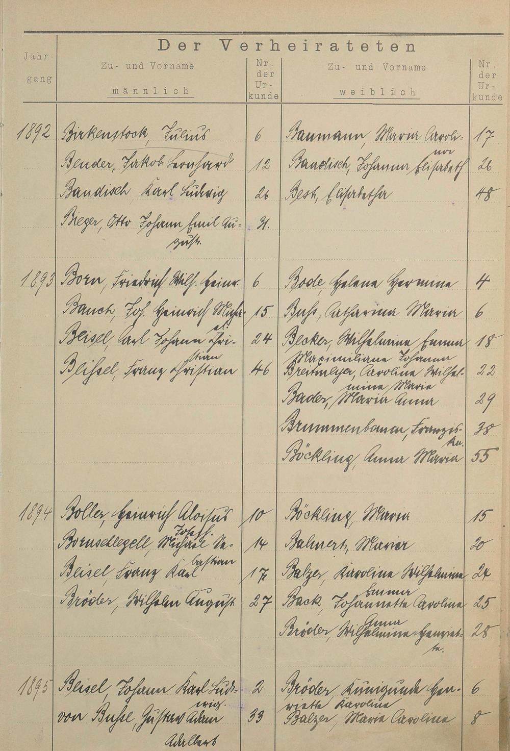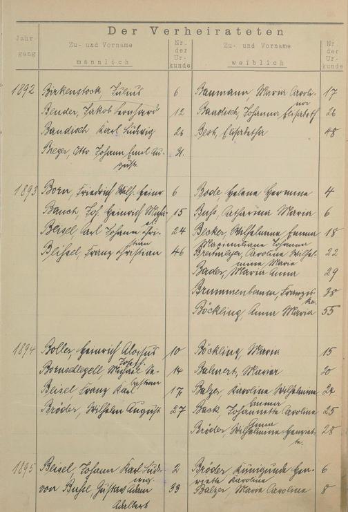 Register A - Z zum Heiratsregister 1874-1900