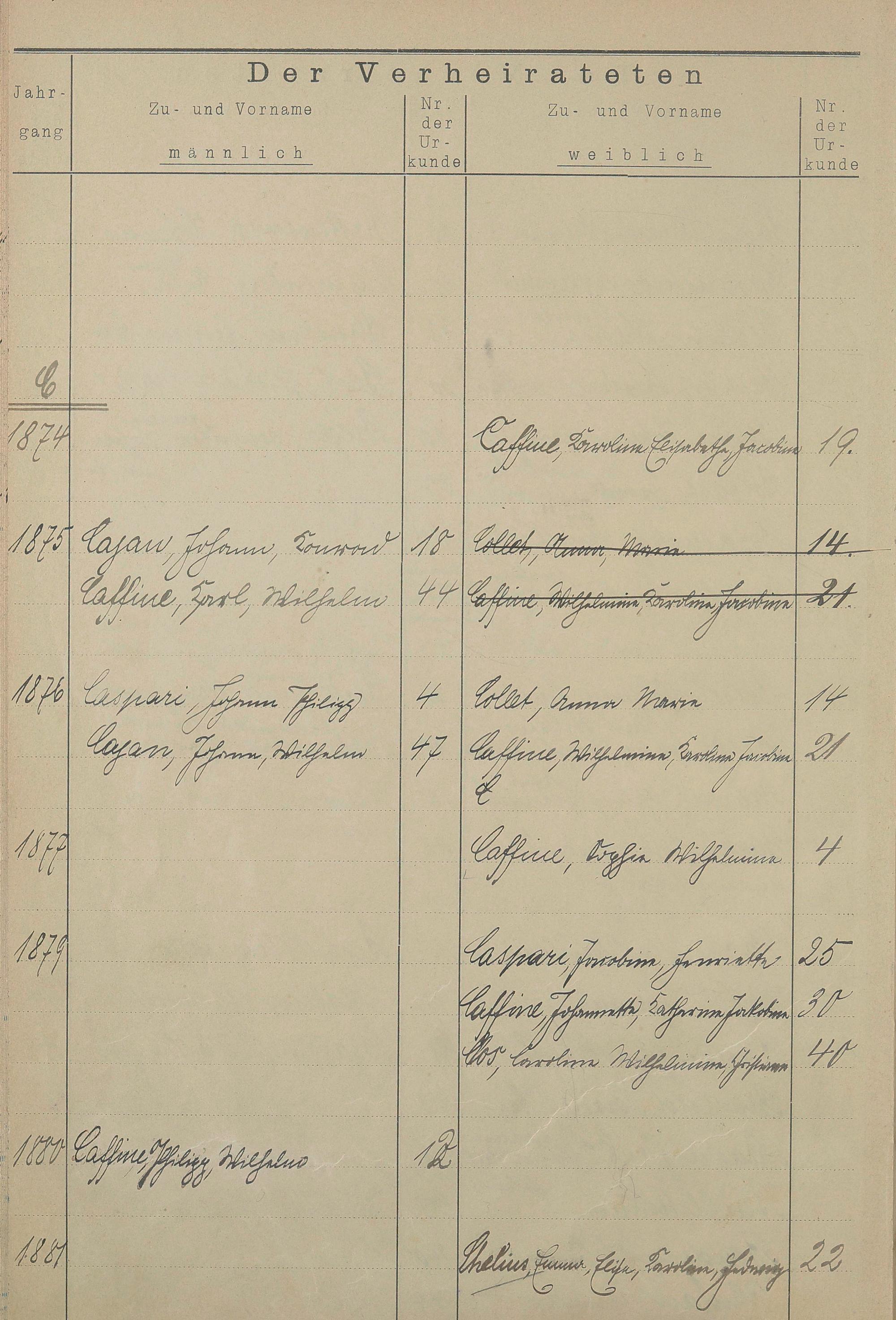 Register A - Z zum Heiratsregister 1874-1900