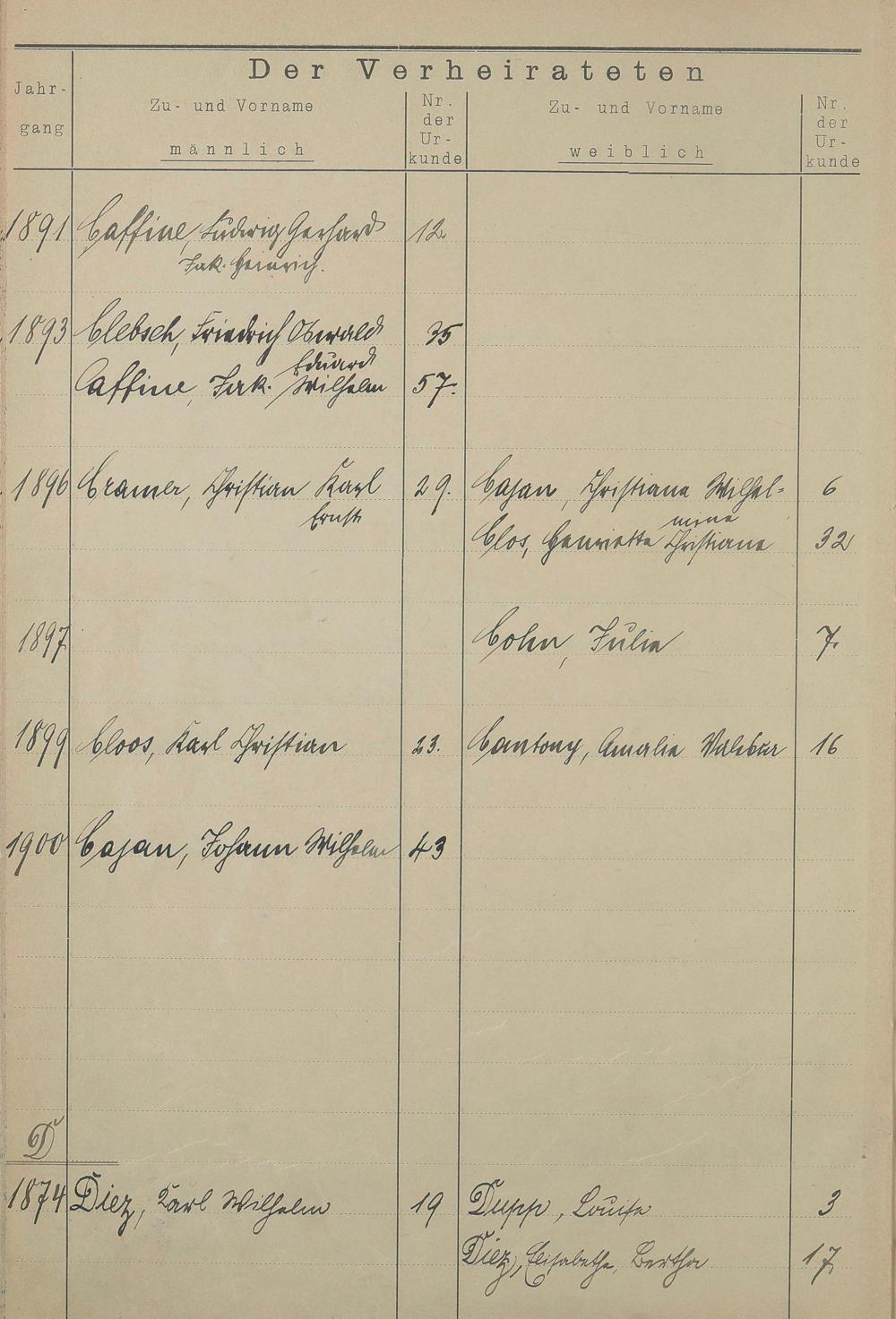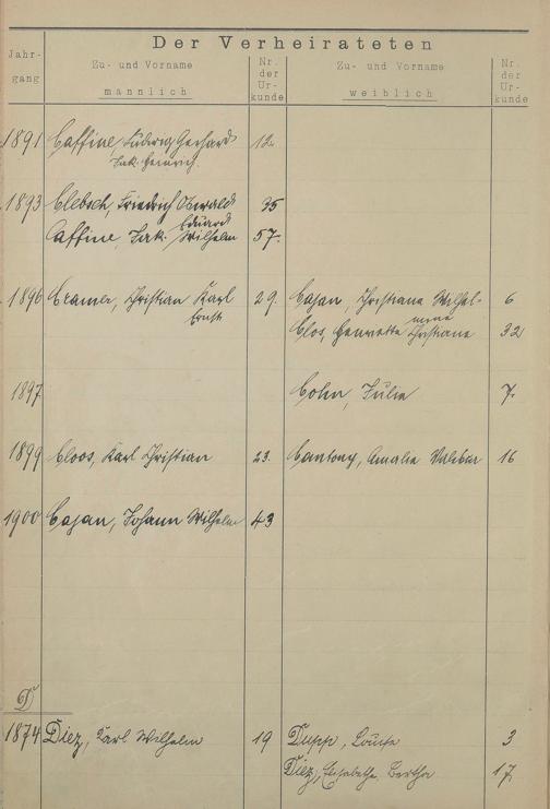 Register A - Z zum Heiratsregister 1874-1900
