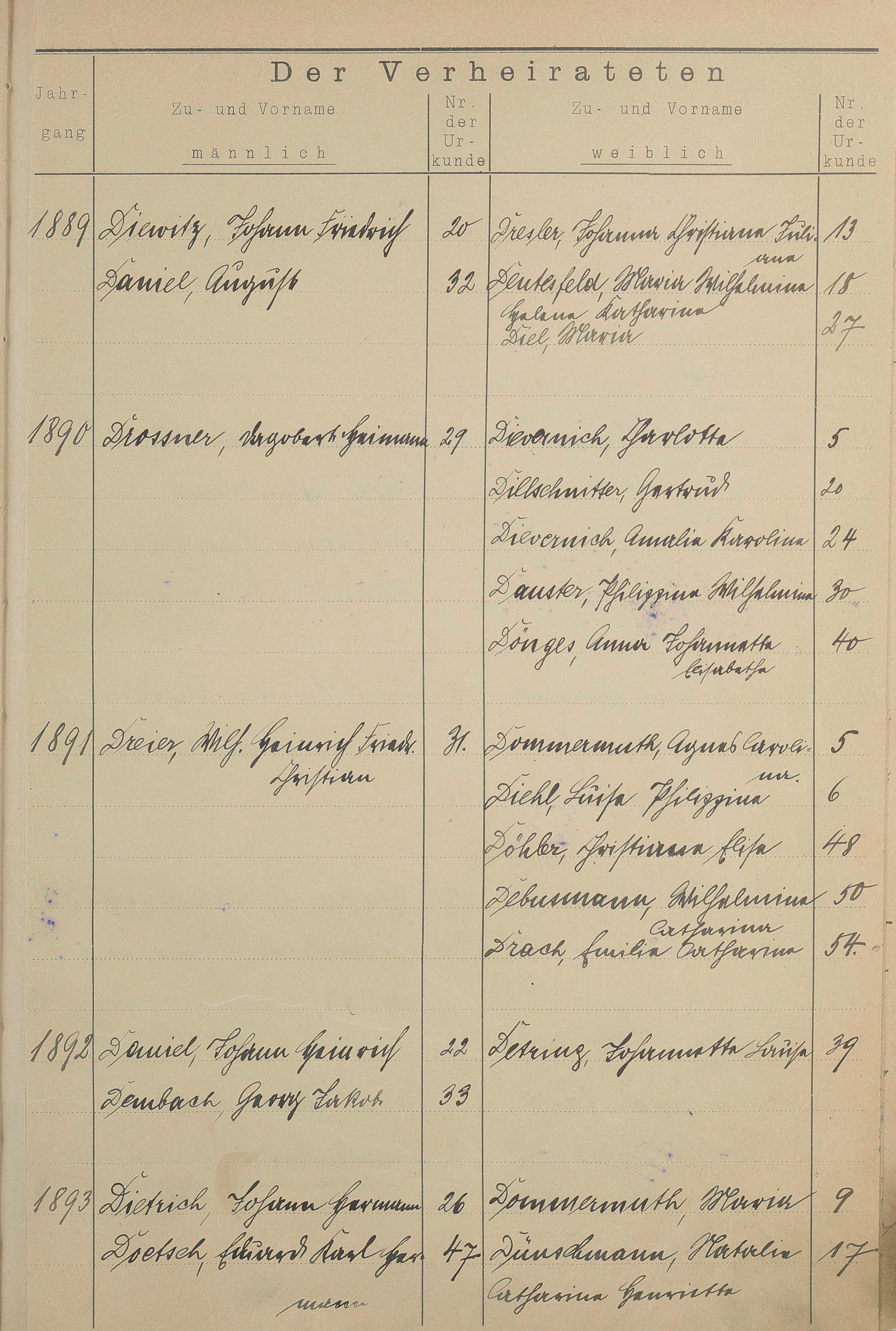 Register A - Z zum Heiratsregister 1874-1900