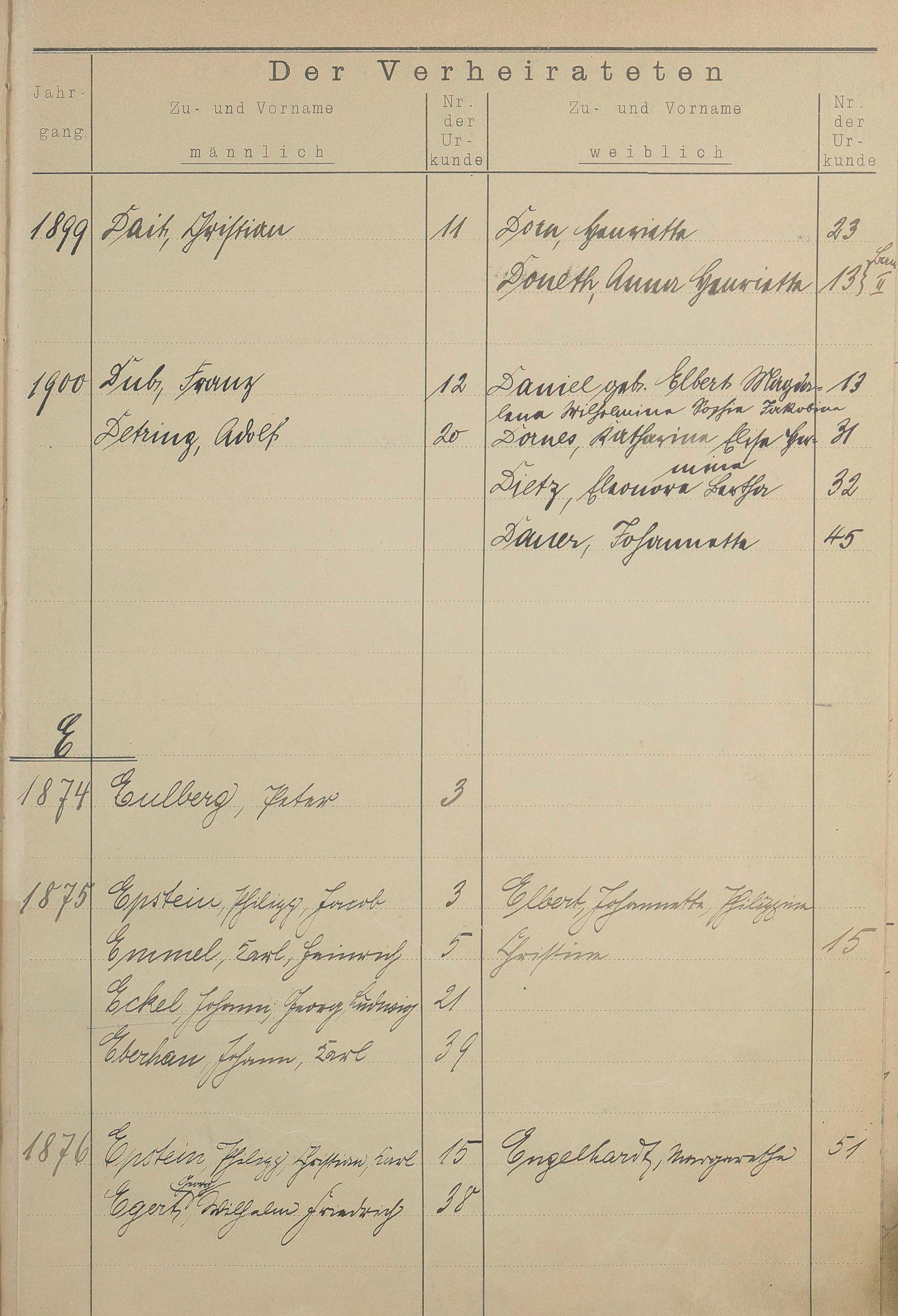 Register A - Z zum Heiratsregister 1874-1900