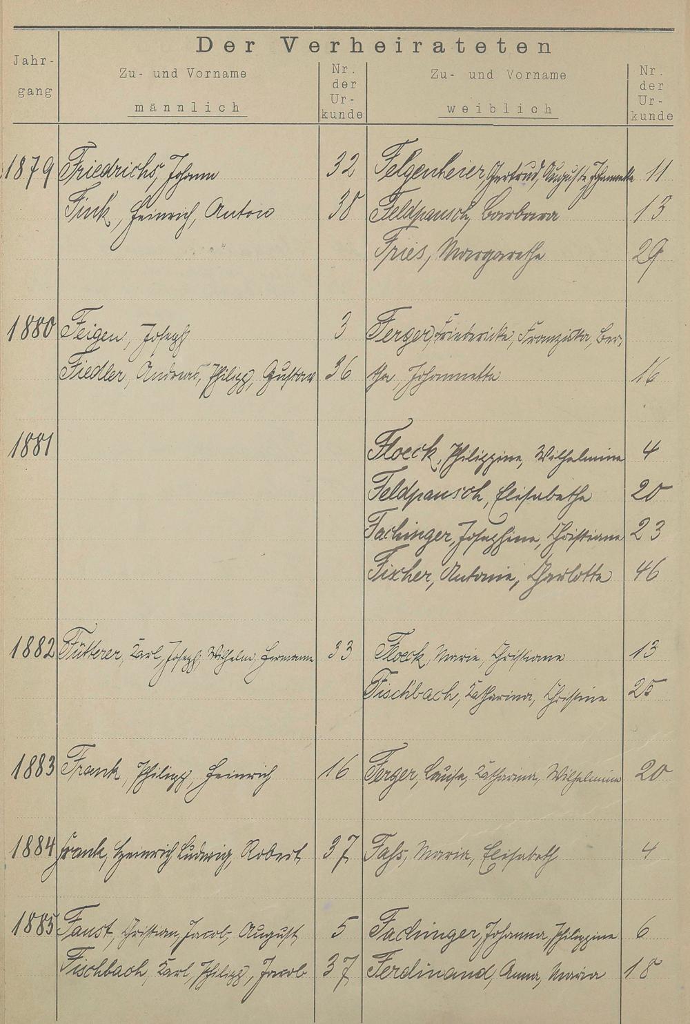 1559: Register A - Z zum Heiratsregister 1874-1900