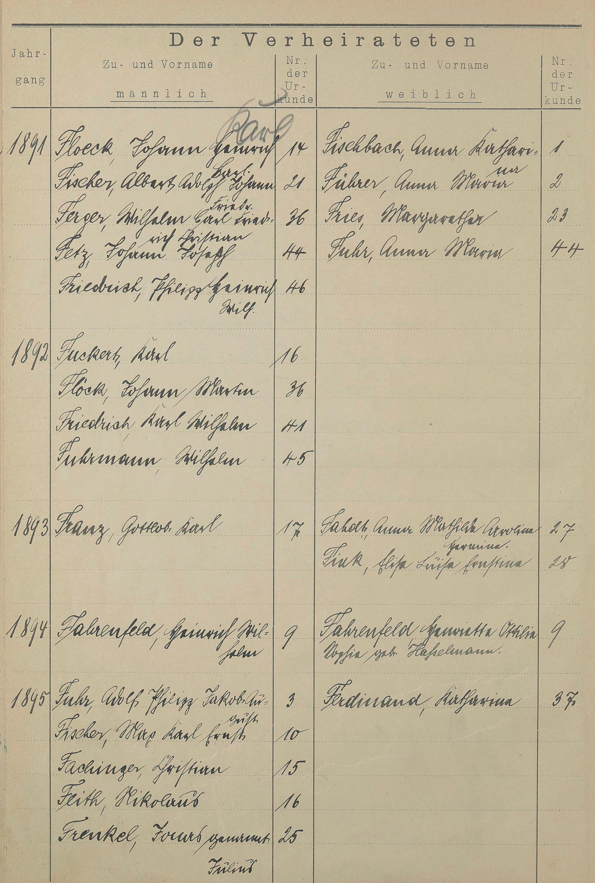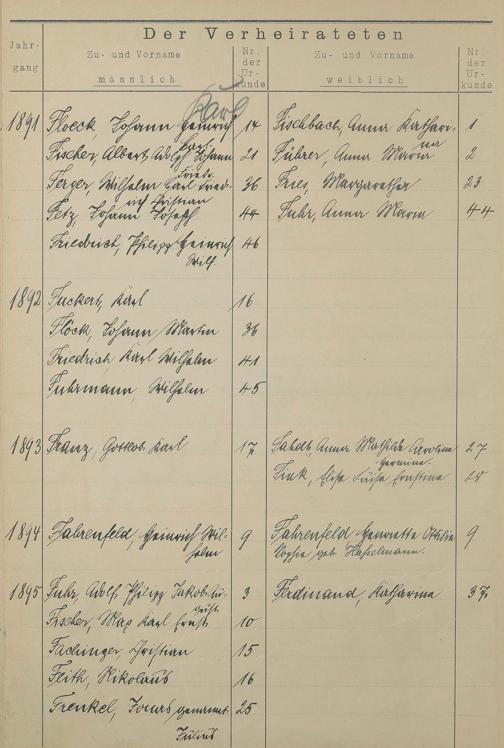 Register A - Z zum Heiratsregister 1874-1900