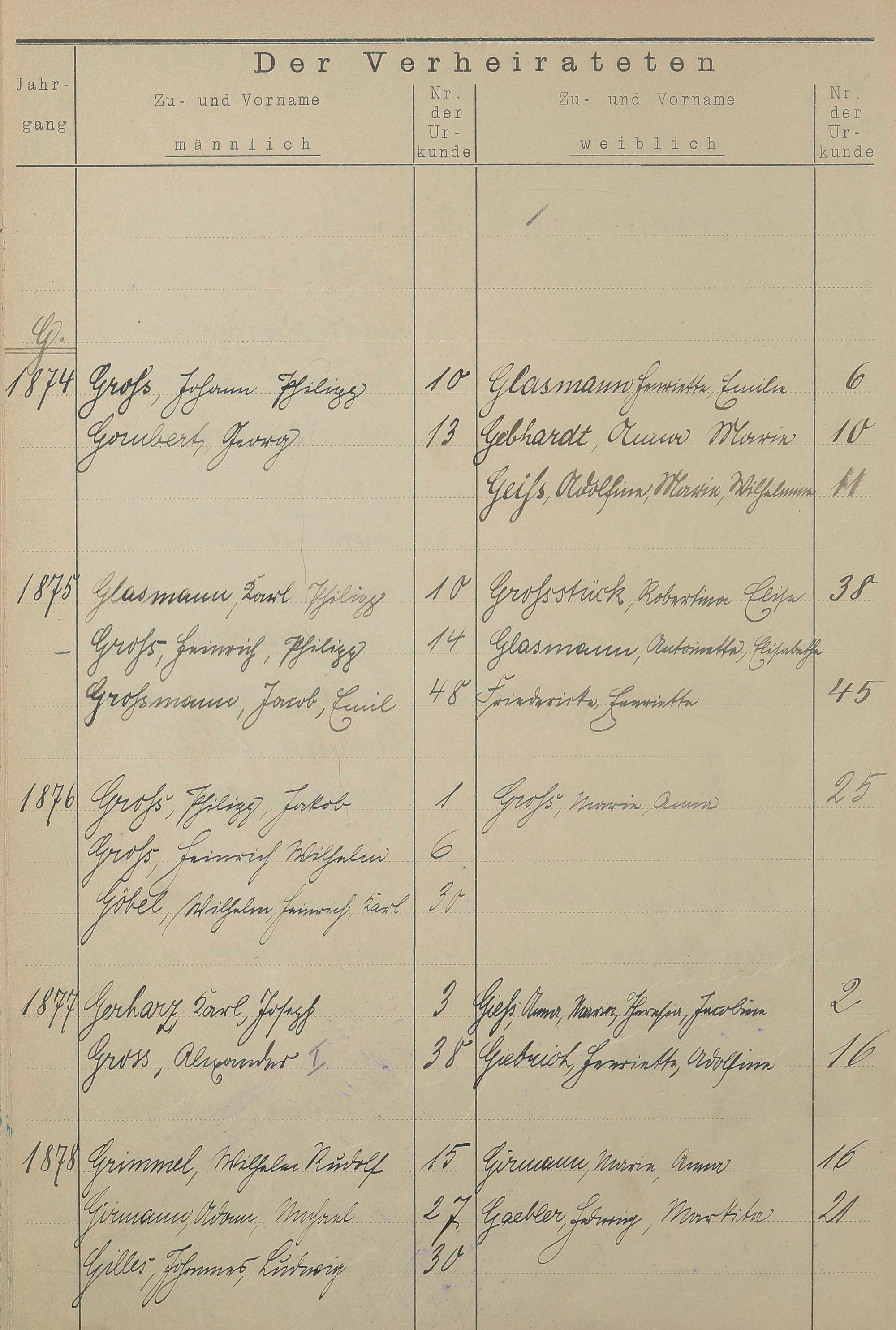 Register A - Z zum Heiratsregister 1874-1900