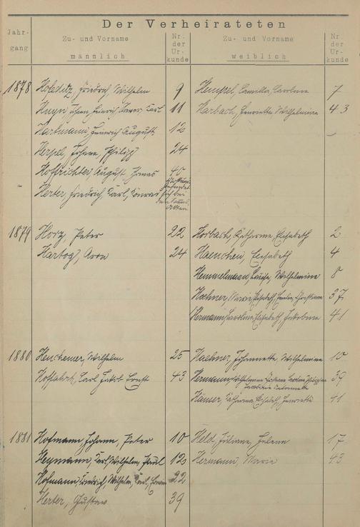 Register A - Z zum Heiratsregister 1874-1900